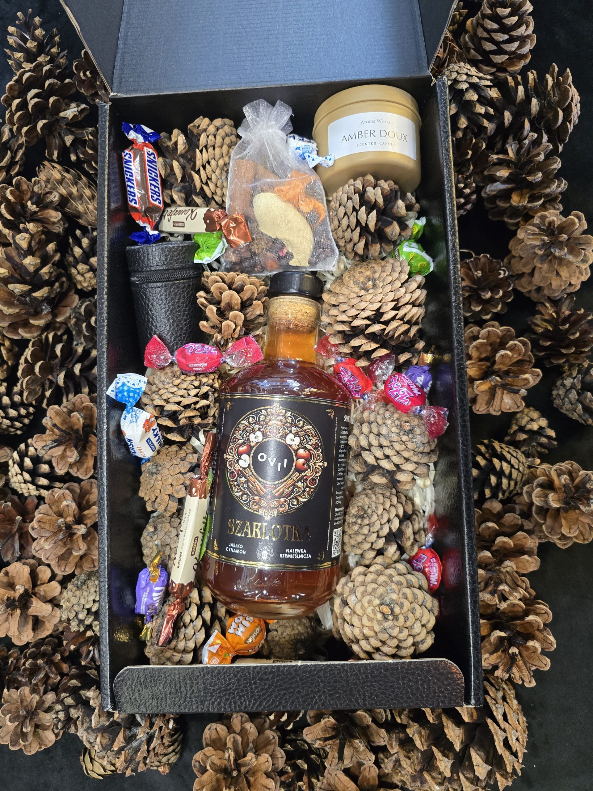 Istnieje możliwość personalizacji wszystkich elementów w zestawie za dodatkową opłatą (lakowanie butelki, personalizacja opakowania- np. logo firmy. Butelki w zestawach z Ovii Szarlotka i Ovii Korzenna Wiśnia można zamieniać.