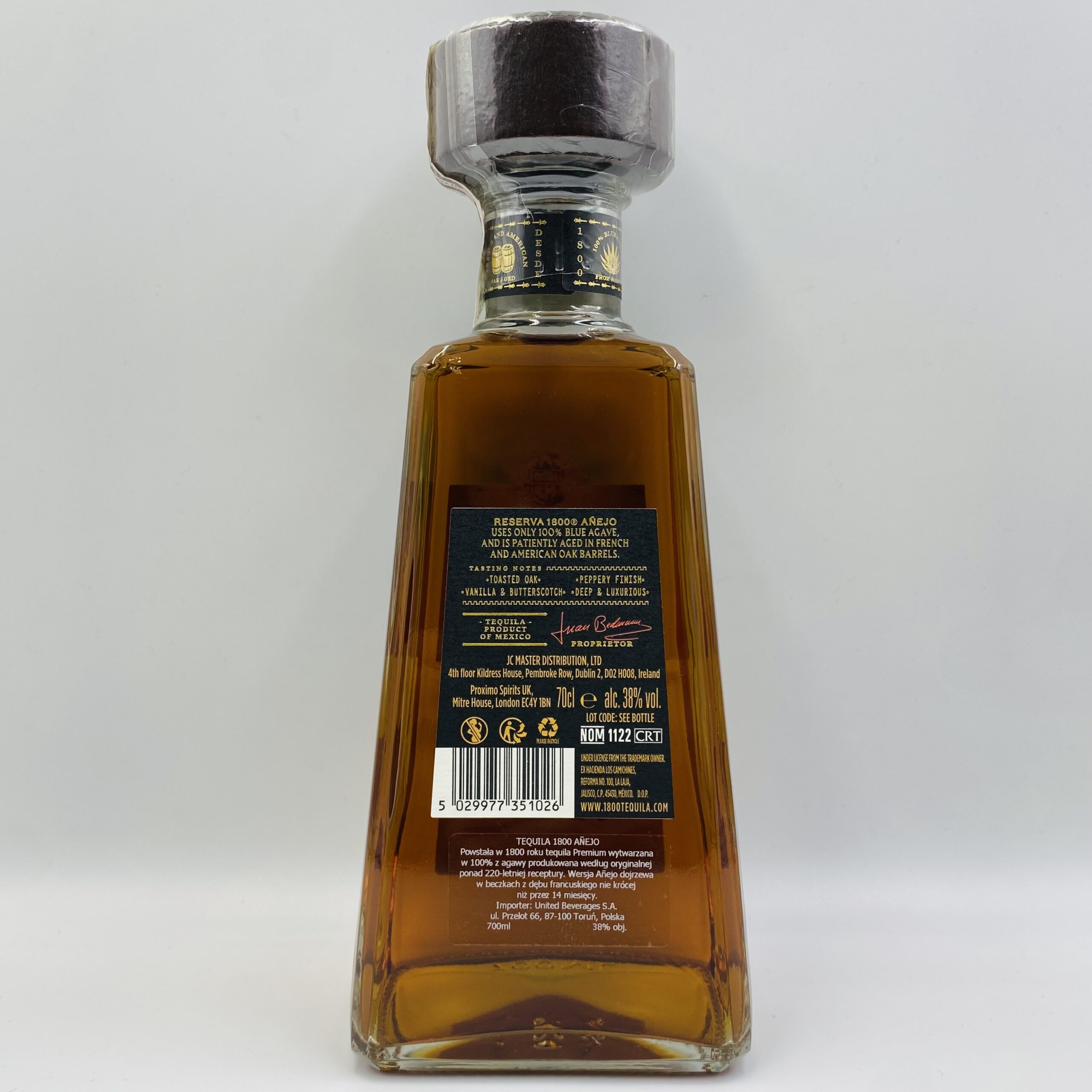 1800 Añejo to luksusowa tequila z 100% niebieskiej agawy Weber, produkowana przez renomowaną destylarnię José Cuervo w Meksyku. Nazwa „1800” nawiązuje do roku, w którym po raz pierwszy zaczęto starzyć tequilę w beczkach dębowych, co stanowi kamień milowy w historii tego trunku. Tequila 1800 Añejo dojrzewa przez co najmniej 14 miesięcy w beczkach z francuskiego dębu, co nadaje jej głęboki, złożony charakter. W trakcie tego procesu rozwijają się bogate nuty smakowe, które wyróżniają ten trunek na tle innych tequili.