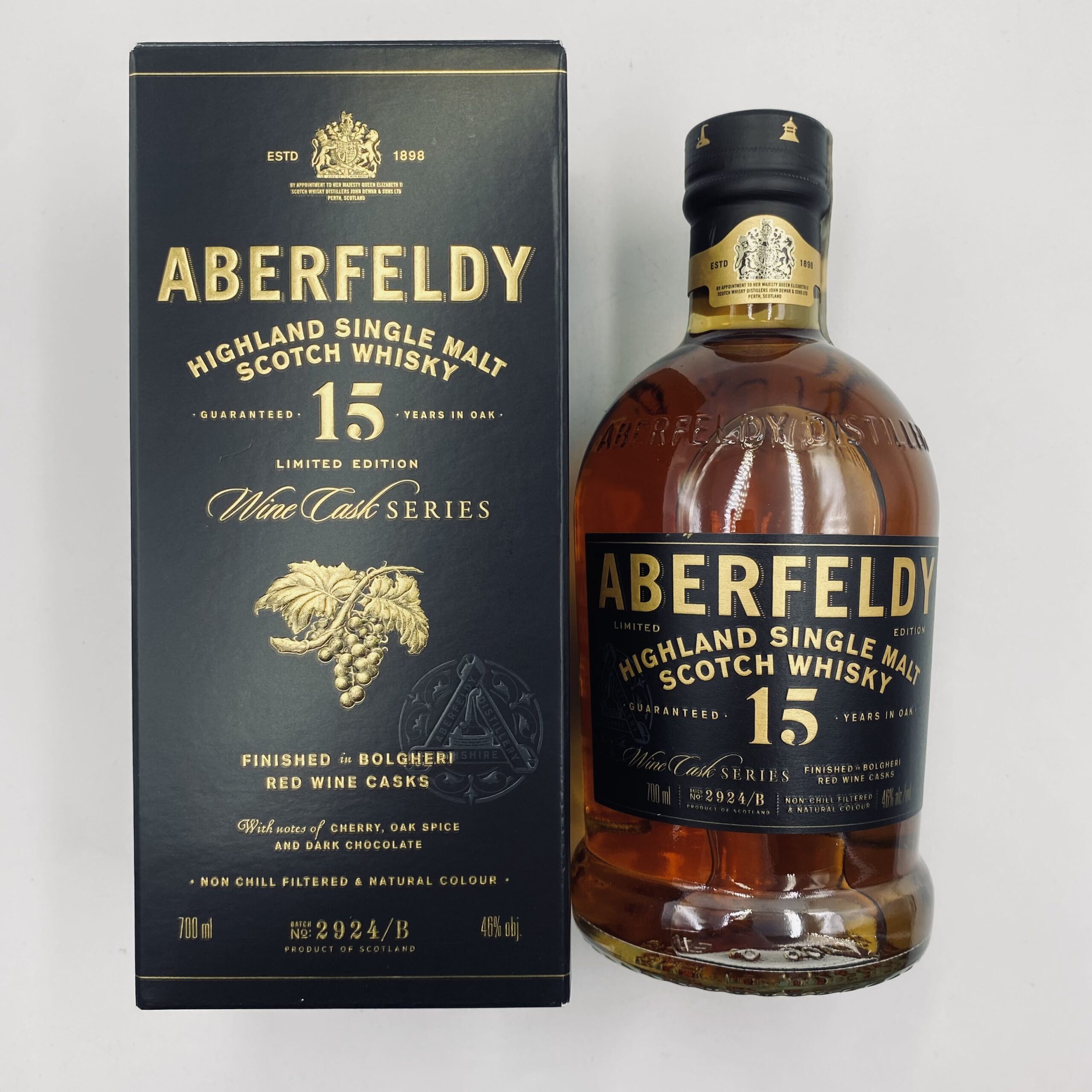 ABERFELDY 15YO BOLGHERI CASK 46% 0,7L to doskonały wybór dla miłośników whisky o złożonym i owocowym profilu smakowym. Idealna do degustacji w wyjątkowych chwilach lub jako wyrafinowany dodatek do kolekcji.