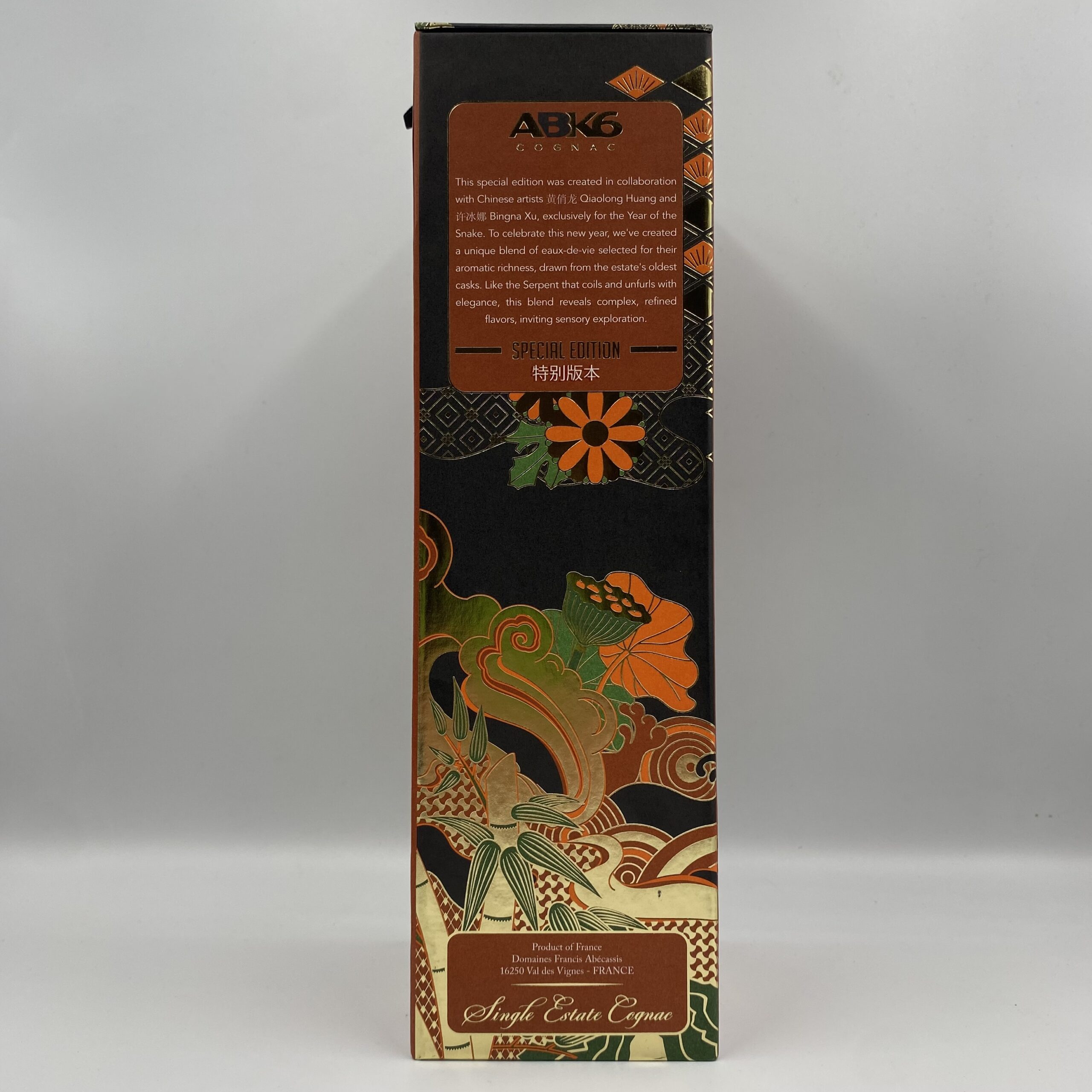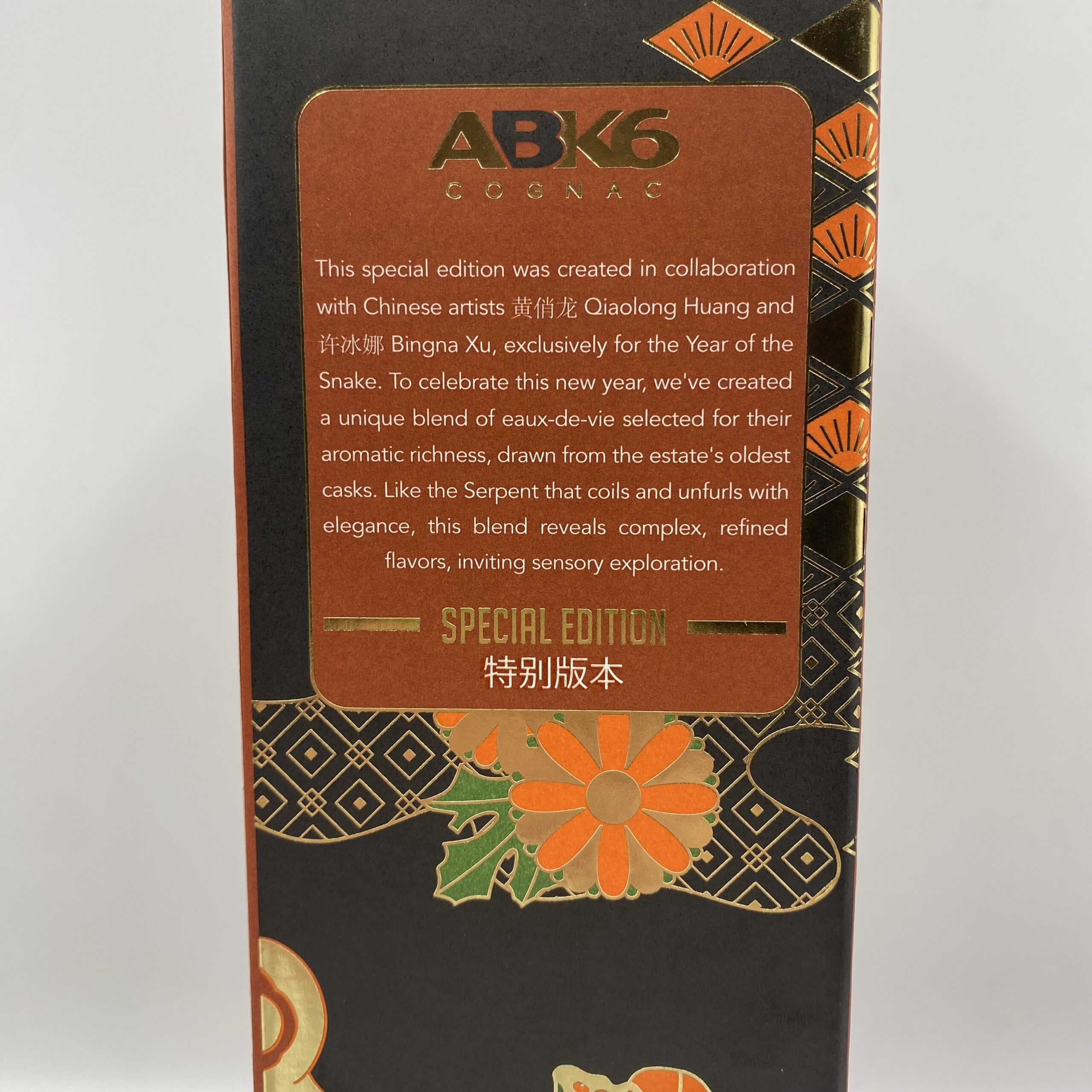 Ten wyjątkowy wydanie koniaku ABK6 VSOP zostało stworzone z okazji chińskiego Roku Węża / „Snake” i jest częścią limitowanej edycji, w której do współpracy zaproszono chińskich artystów, a także wykorzystano starannie dobrane eaux-de-vie leżakowane w najstarszych beczkach posiadłości. Marka ABK6 to rodzinna posiadłość Domaine Francis Abécassis w apelacji Cognac, produkująca single-estate koniaki — czyli pełna kontrola od winogrona po butelkę. Wersja VSOP oznacza minimum 4 lata dojrzewania legalnie, lecz w tym przypadku destylaty użyte do miksu były leżakowane w najstarszych dębowych beczkach na posiadłości, co daje głębszy charakter niż typowe VSOP. Butelkowana z mocą 40% objętości — klasyczny poziom dla kategorii VSOP — w pojemności 0,7 litra.
