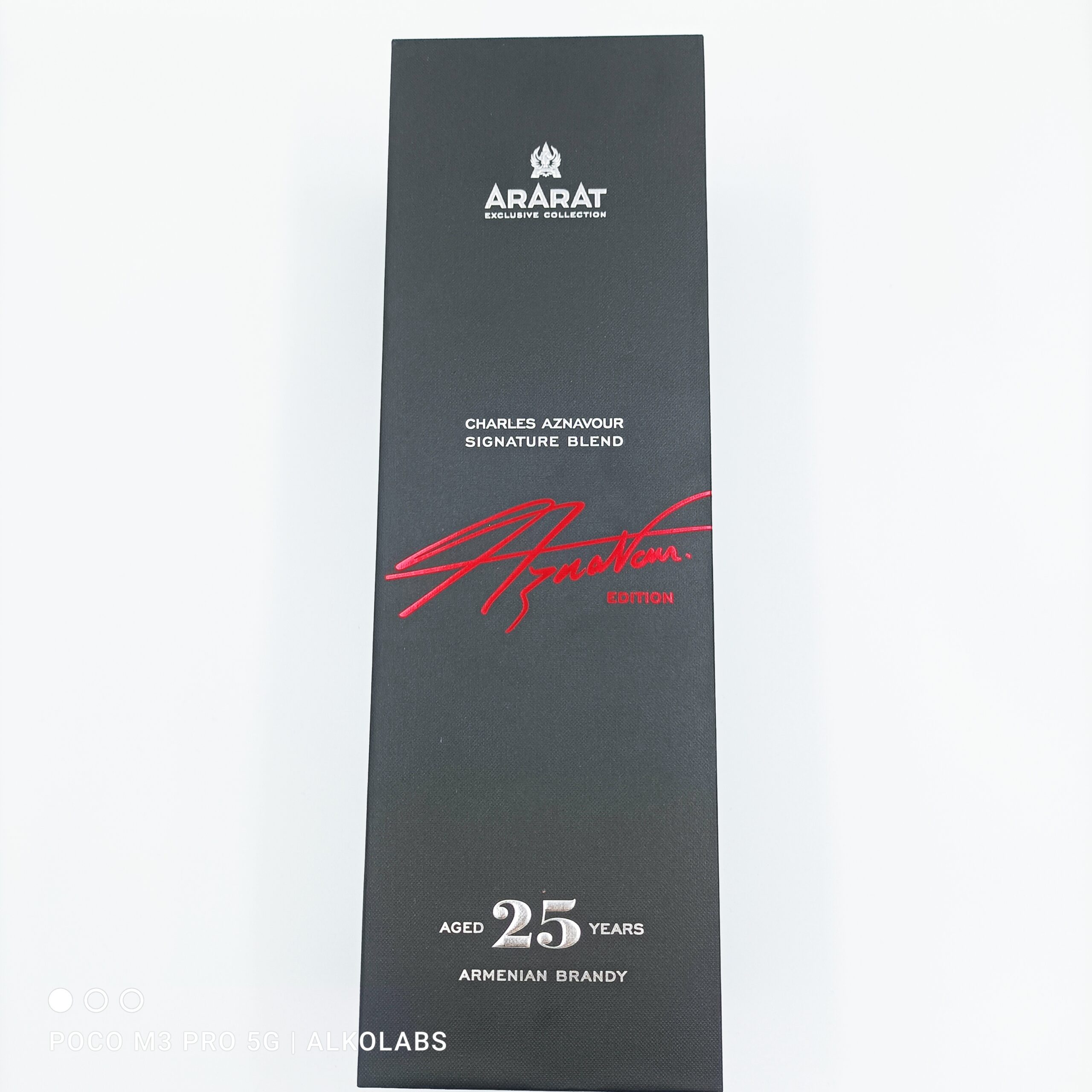 Ararat Charles Aznavour Signature Blend 25YO to wyjątkowa ormiańska brandy, stworzona przez Yerevan Brandy Company we współpracy z legendarnym artystą Charlesem Aznavourem. Ta limitowana edycja celebruje kluczowe momenty w karierze Aznavoura, łącząc w sobie rzadkie destylaty z roczników 1956, 1960 i 1981, odzwierciedlające jego artystyczne triumfy. Brandy dojrzewała przez 25 lat w dębowych beczkach, osiągając głęboki bursztynowy kolor z refleksami mahoniu i złota.