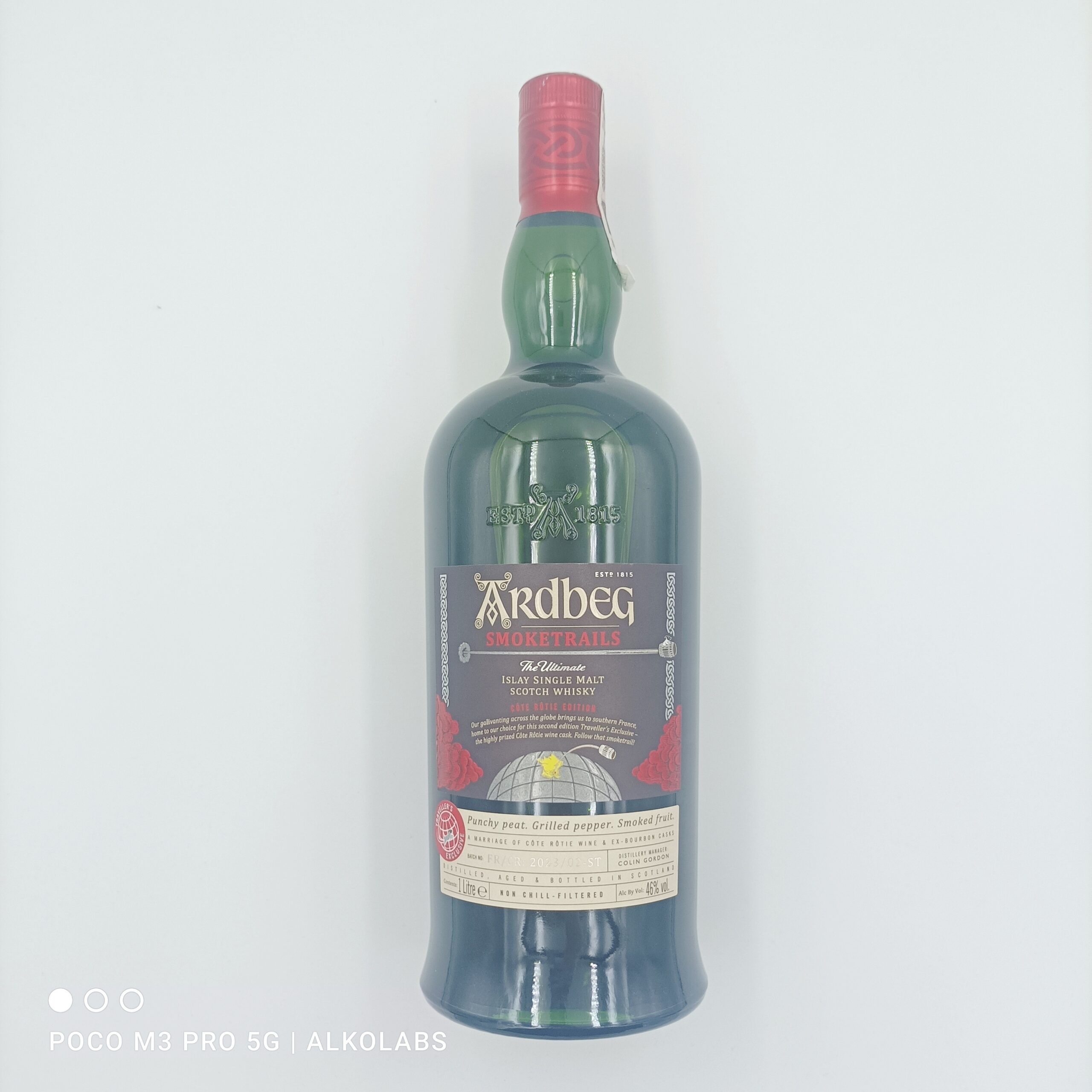 Ardbeg Smoketrails Côte Rôtie Edition to druga, rocznikowa odsłona serii Smoketrails — limitowanych edycji whisky dla kanału Travel Retail i destylarni. Połączenie dojrzewających w beczkach po bourbonie i w beczkach po czerwonym winie z regionu Côte Rôtie (dolina Rodanu we Francji) nadaje trunkowi unikalny, wielowymiarowy charakter. To mocny i dymny single malt, z typowym stylem Ardbega przełamanym winno-owocowym finiszem. Zabuttelkowana z zawartością alkoholu 46 %, niefiltrowana na zimno, bez dodatku karmelu, w dużej, podróżnej butelce 1 l. Idealna propozycja dla miłośników torfowych whisky szukających niecodziennych inspiracji z beczek.