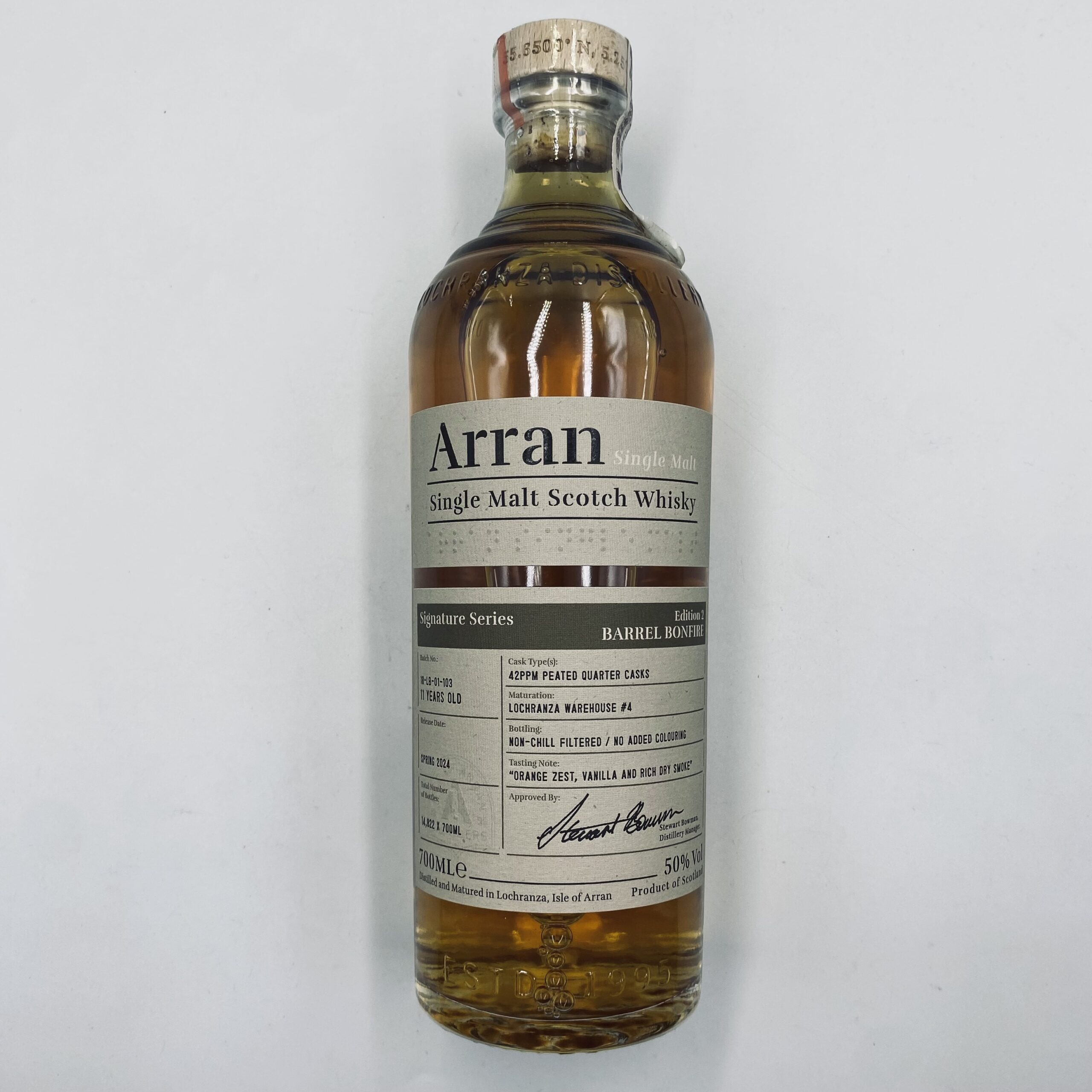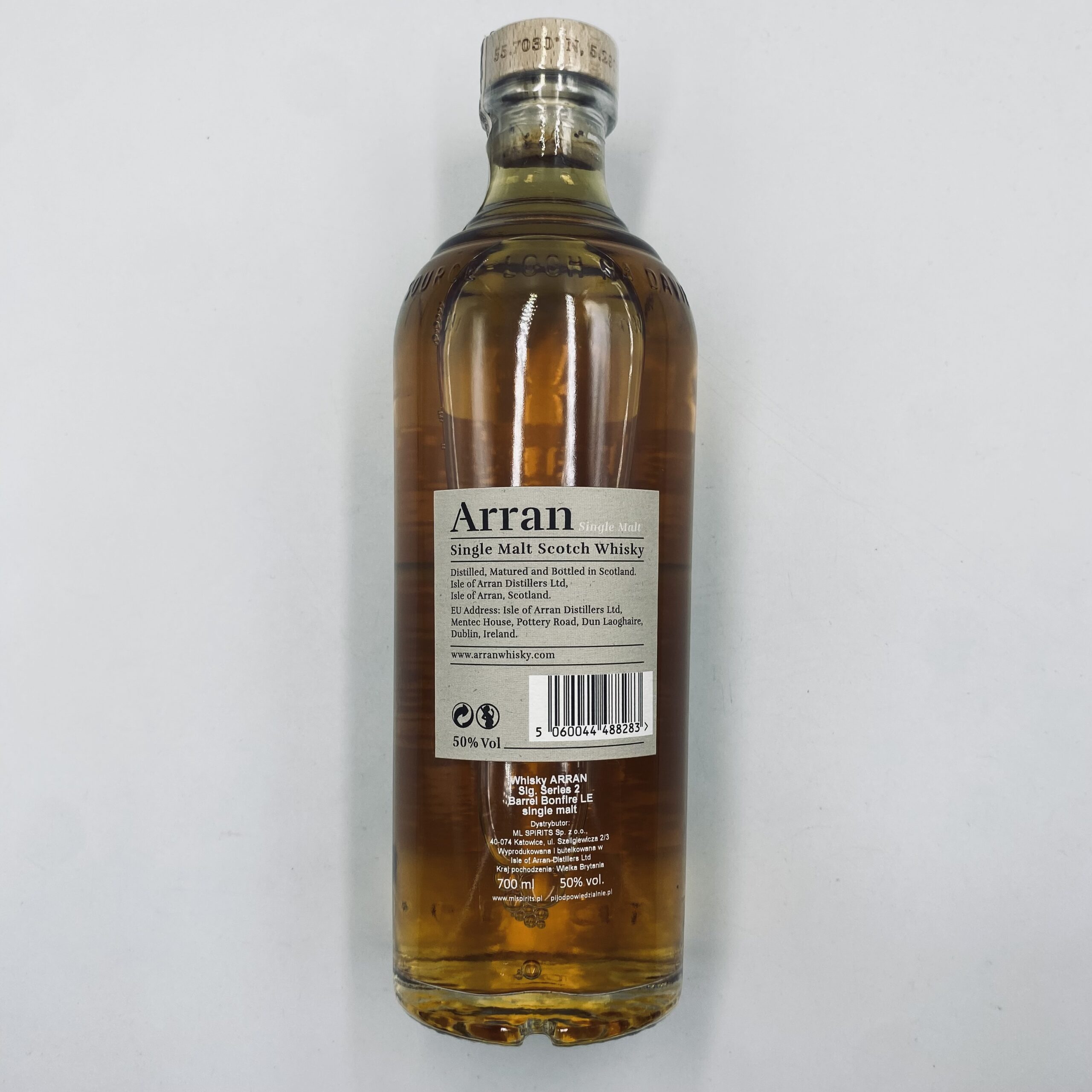 Arran Le Signature Series 2 Barrel Bonfire 50% 0,7L to druga edycja wyjątkowej serii „Le Signature” z destylarni Arran, znanej z produkcji whisky o charakterystycznym profilu wyspiarskim. Edycja Barrel Bonfire to whisky single malt dojrzewająca w starannie dobranych beczkach, które nadają jej intensywny i ogniskowy charakter, inspirowany klimatem wieczorów spędzanych przy ognisku.