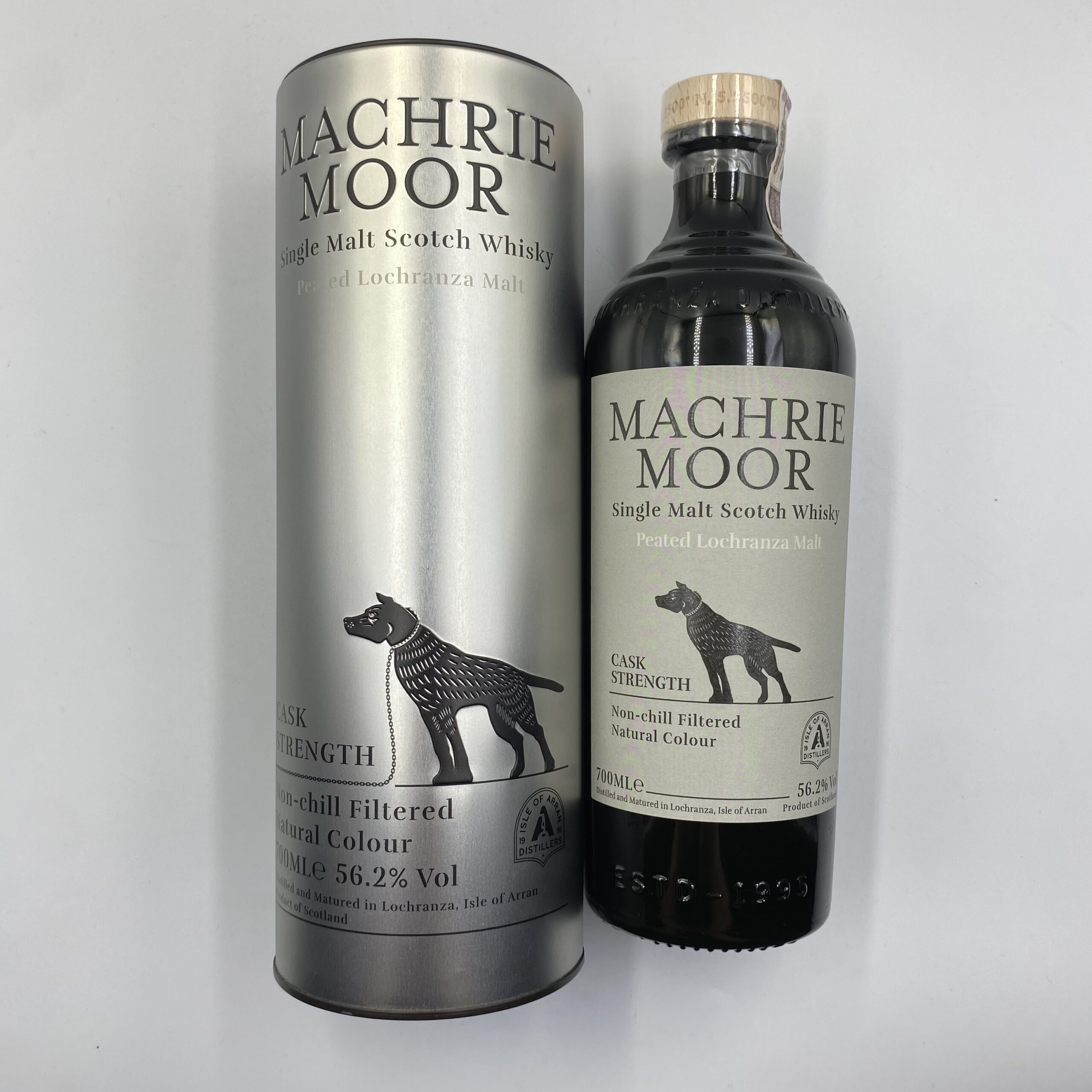 Arran Machrie Moor Peated Cask Strength to intensywna, rzemieślnicza wersja single malt whisky z destylarni Arran (Lochranza) na wyspie Arran. Wersja „Machrie Moor” jest inspirowana bogatym, torfowym charakterem i uznawana za jedną z bardziej zdecydowanych interpretacji stylu Arran. W tej edycji whisky dojrzewała w starannie dobranych beczkach, a następnie została zabutelkowana w mocy beczki (cask strength) 56,2%, bez filtracji na zimno i bez dodatku barwników, co pozwala oddać pełną intensywność aromatów i struktury. Nazwa „Machrie Moor” odnosi się do torfowisk na wyspie Arran i podkreśla wpływ dymu na charakter trunku.