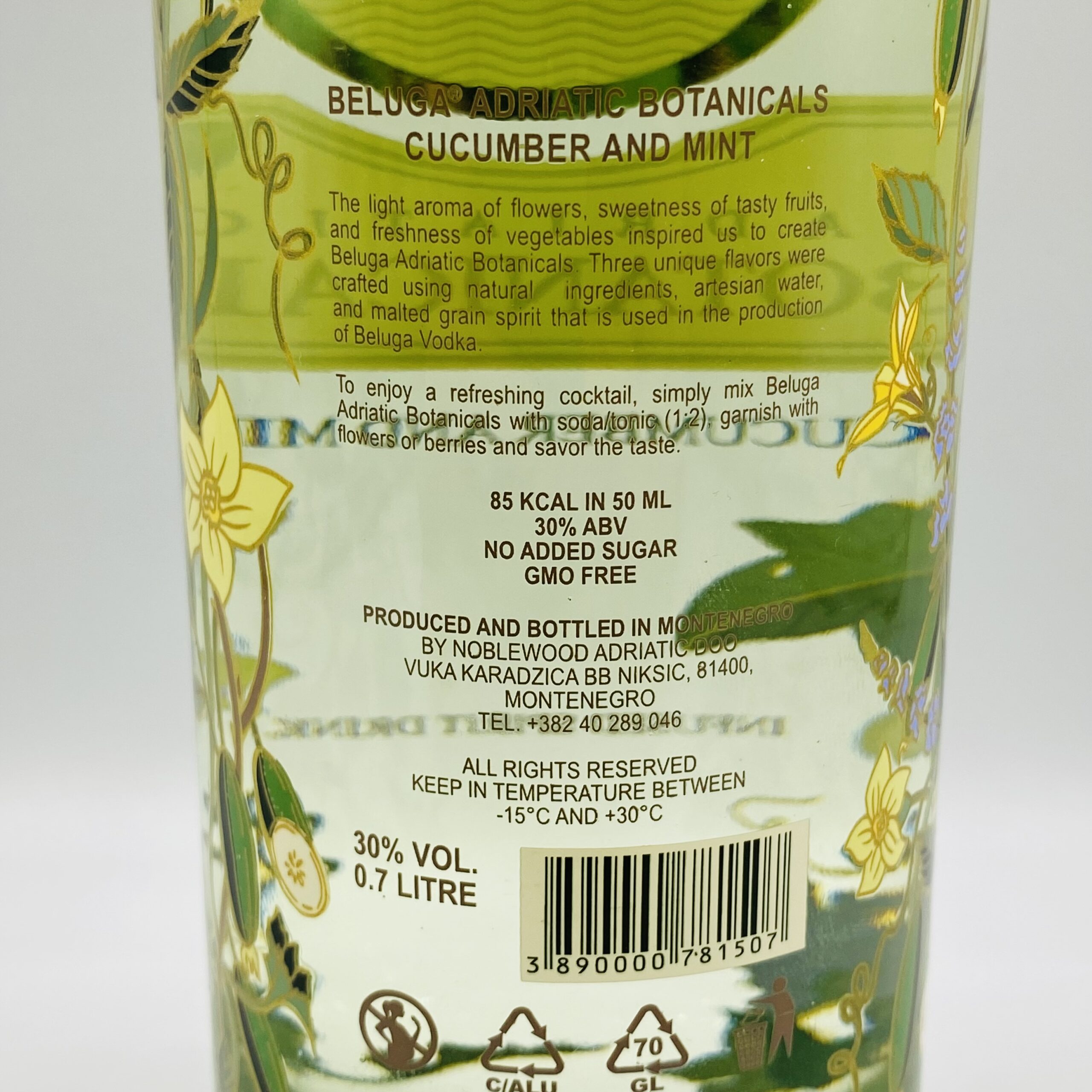 Beluga Adriatic Botanicals Cucumber & Mint to wyjątkowa wódka smakowa z prestiżowej serii Beluga, inspirowana naturalnymi aromatami śródziemnomorskich ziół i świeżych warzyw. Produkowana przez destylarnię Beluga (znaną z wysokiej jakości wódek premium), bazuje na czystym spirytusie zbożowym oraz wodzie z głębokich źródeł, poddawanym wieloetapowej filtracji przez węgiel drzewny i piasek kwarcowy. Wódka ta jest delikatnie aromatyzowana naturalnym ogórkiem i miętą, co nadaje jej lekki, orzeźwiający charakter oraz sprawia, że doskonale nadaje się do serwowania schłodzonej lub jako składnik koktajli.