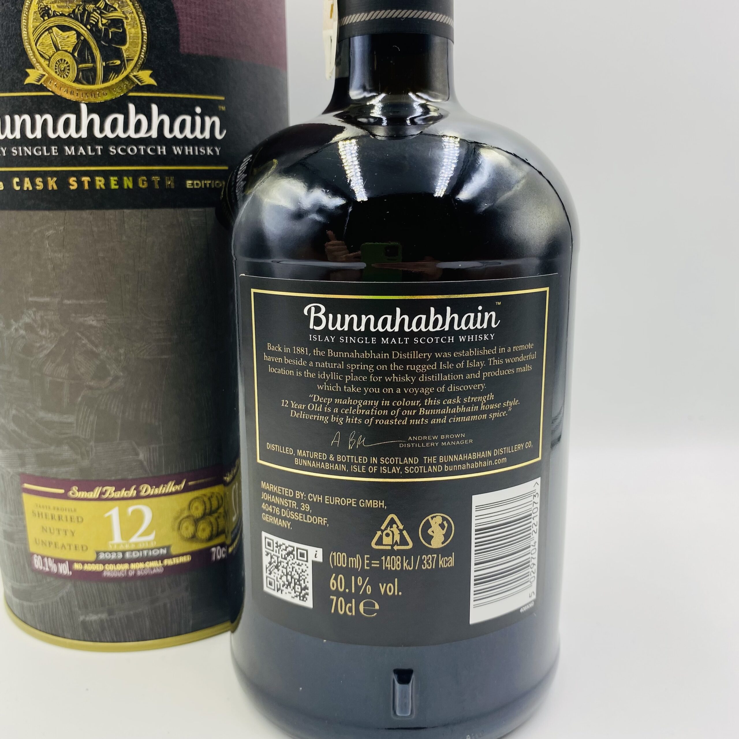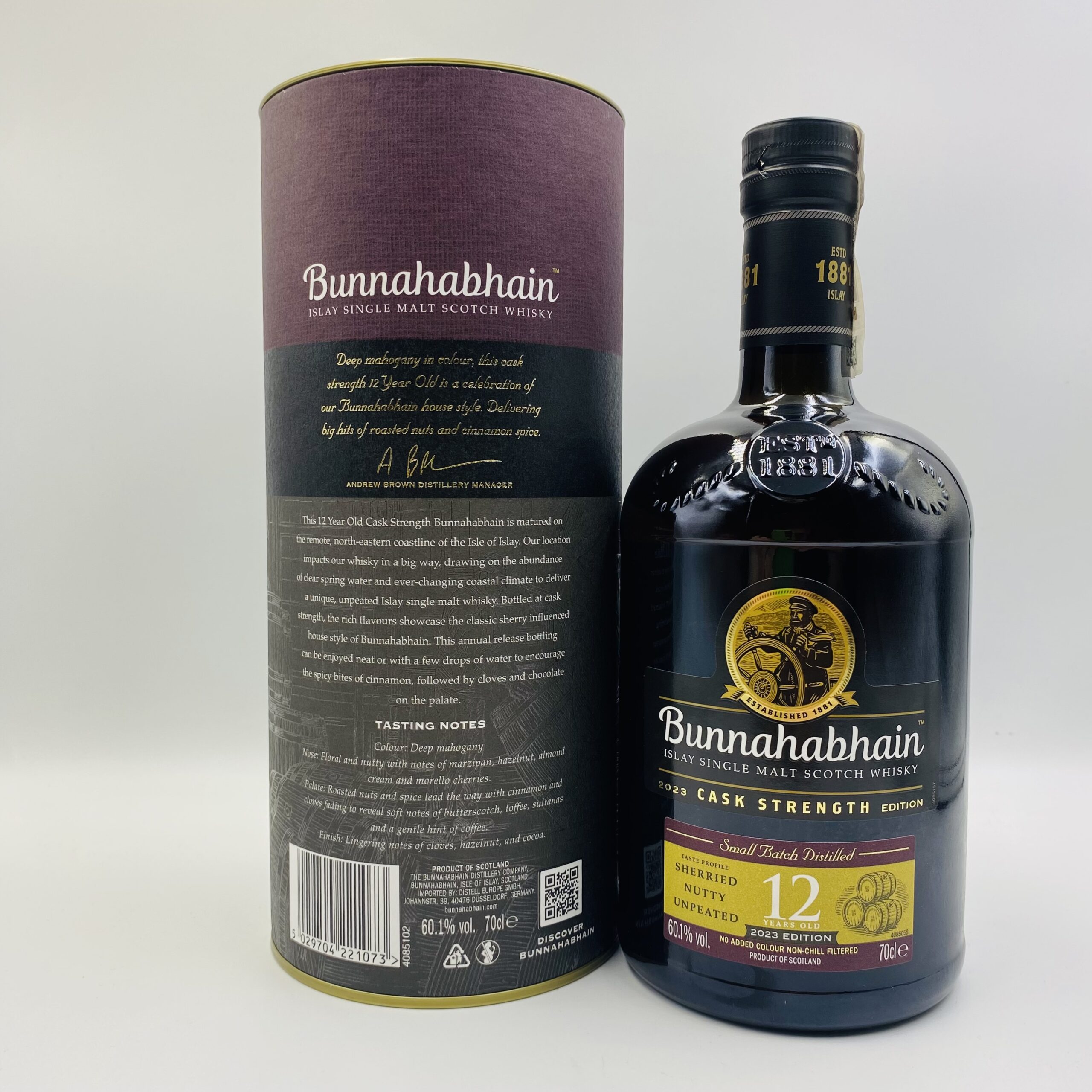 Wersja rocznikowa 2023 single malt whisky z destylarni Bunnahabhain na wyspie Islay wyróżnia się dojrzewaniem przez 12 lat w beczkach po sherry (first- oraz second-fill oloroso) oraz butelkowaniem „mocą beczki” wynoszącą 60,1% ABV. Naturalny kolor, brak filtracji na zimno — to trunek dla koneserów, którzy chcą doświadczyć pełnej mocy destylatu.