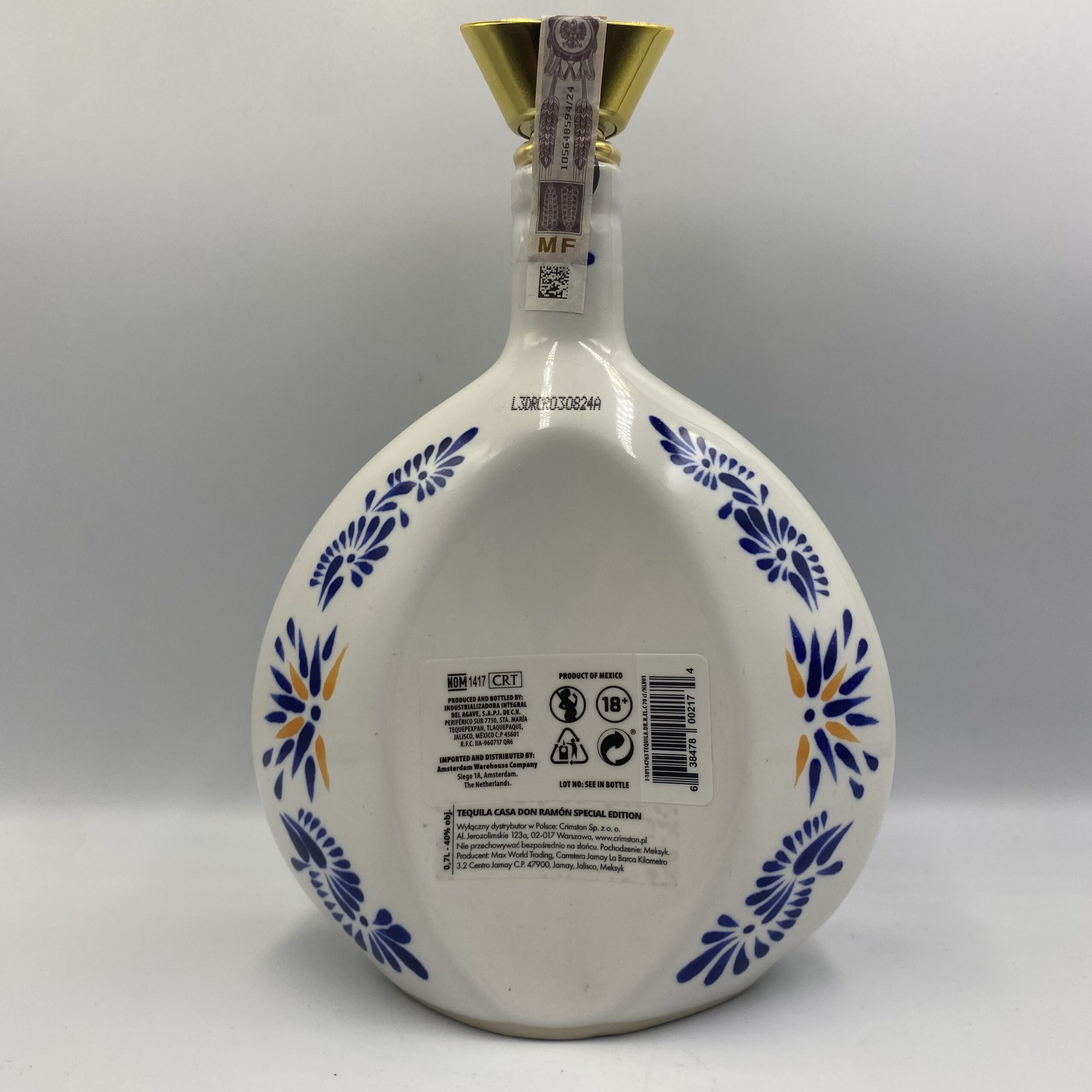 Ten wyjątkowy trunek to meksykańska tequila z serii limitowanych edycji „Cerámica” od Don Ramón. Wytwarzana jest w 100% z agawy Azul Weber. Po fermentacji i destylacji trafia na starzenie przez 6 miesięcy w beczkach z amerykańskiego białego dębu, co nadaje jej łagodność i głęboki aromat drewna. Edycja „Cerámica” wyróżnia się opakowaniem — każda butelka to dekoracyjna ceramika inspirowana sztuką Talavery i ręcznym zdobieniem nawiązującym do meksykańskich wzorów.