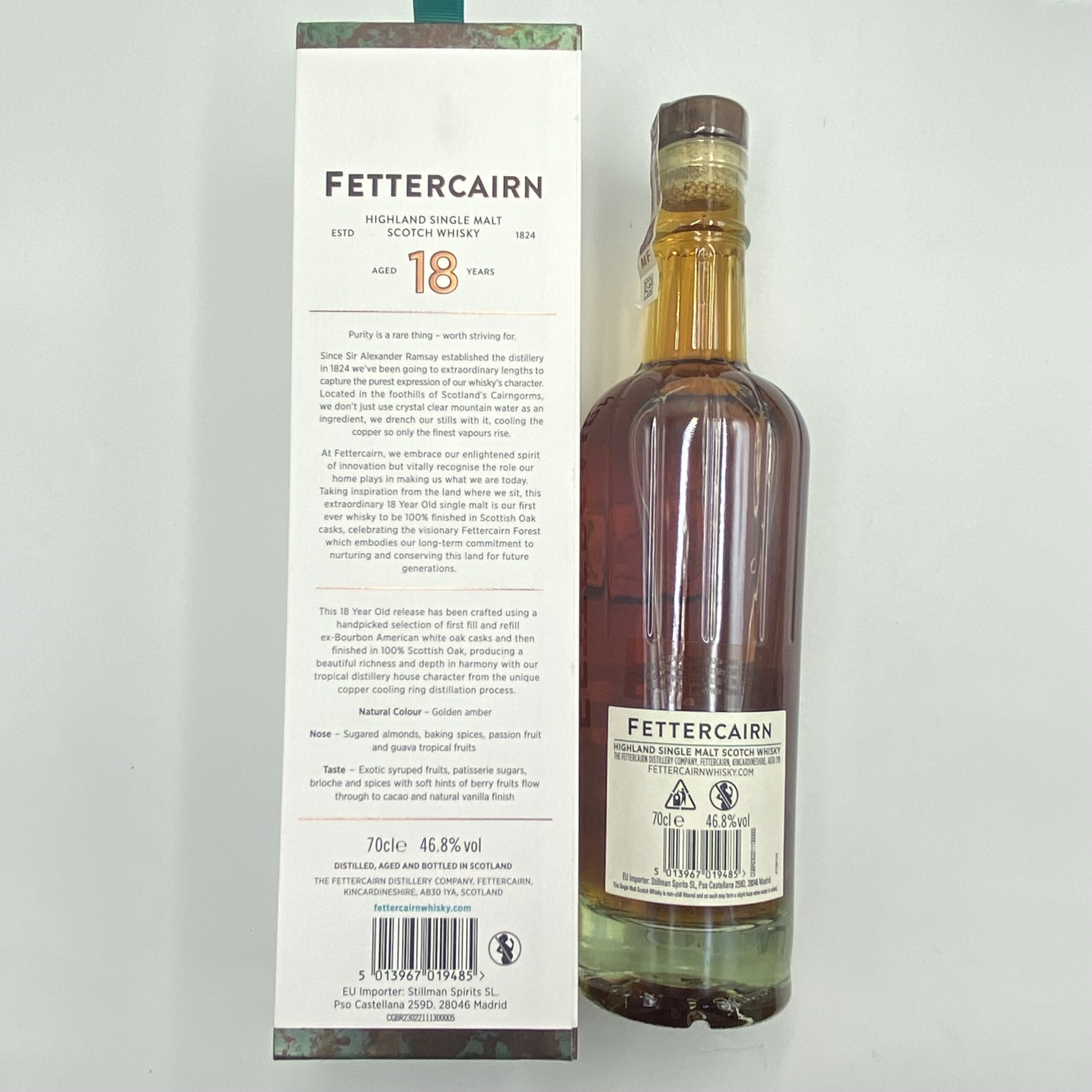 Butelka Fettercairn 24 YO jest elegancka i prestiżowa, idealnie odzwierciedlając charakter tej wyjątkowej whisky. Opakowanie podkreśla luksusowy charakter trunku, który jest idealnym wyborem dla koneserów szukających wyjątkowych doznań smakowych.
