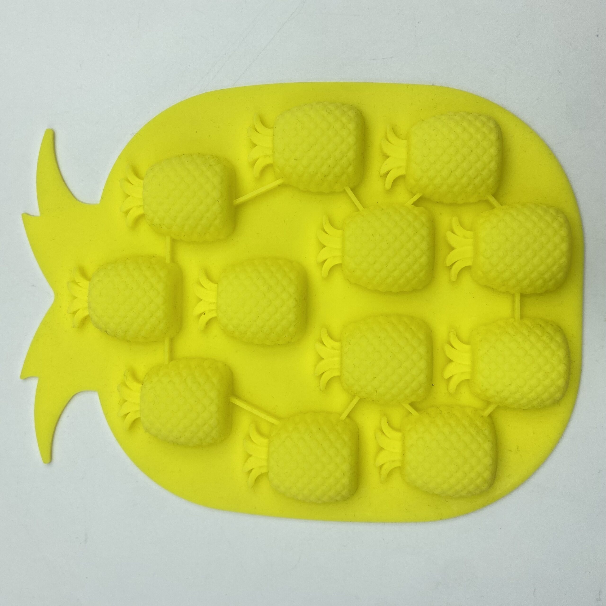 Silikonowa forma do lodu. Zawiera miejsce na 12 kostek lodu o kształcie ananasa.