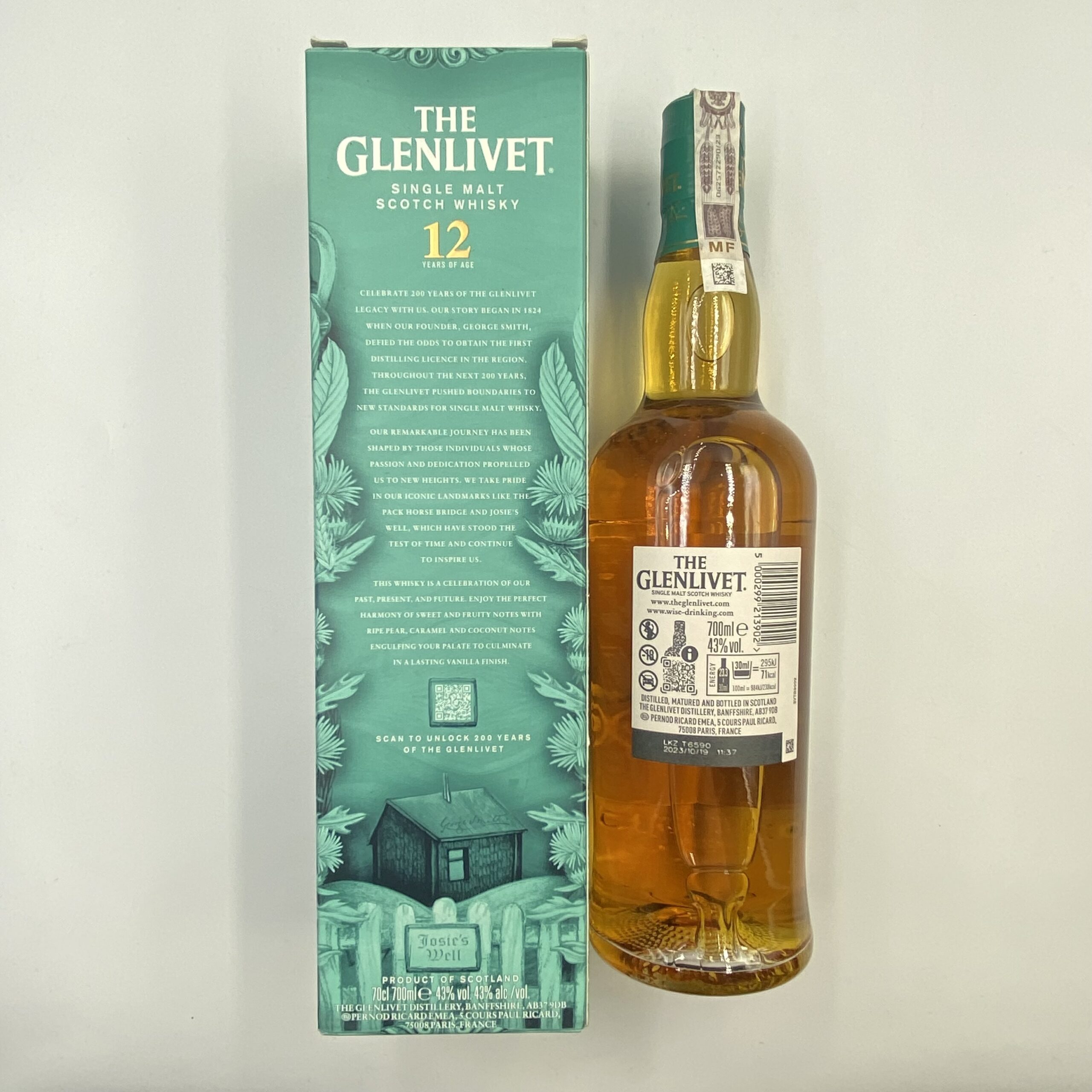 Glenlivet 12 Year Old 200 Anniversary to specjalna edycja klasycznej whisky single malt z destylarni The Glenlivet, stworzonej w 1824 r. i uznawanej za jedną z destylarni, które ukształtowały nowoczesny styl Speyside. Ta jubileuszowa wersja powstała z okazji 200‑lecia istnienia destylarni, celebrując jej dziedzictwo i długą historię produkcji whisky. Whisky starzona przez minimum 12 lat w starannie dobranych beczkach z amerykańskiego i europejskiego dębu, a następnie butelkowana z mocą 43%, prezentuje klasyczny, elegancki charakter Glenlivet — owocowy, delikatny i harmonijny, z nutami przypraw i subtelnym wpływem drewna. Edycja 200 Anniversary wyróżnia się również specjalnym opakowaniem podkreślającym jubileuszowy charakter.