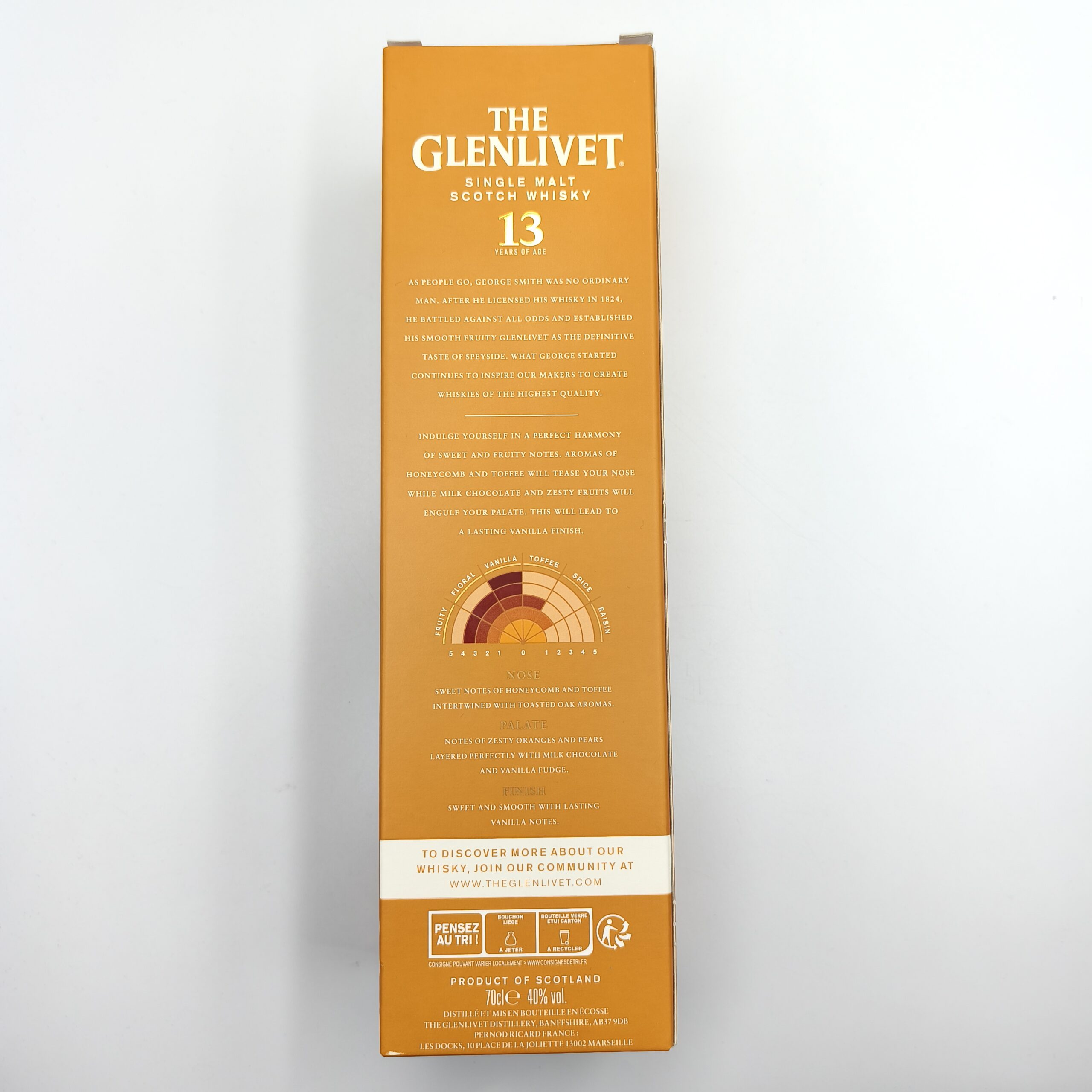 Limitowana wersja The Glenlivet 13YO First Fill American Oak dojrzewa wyłącznie w beczkach z amerykańskiego dębu pierwszego napełnienia. Taki sposób maturacji nadaje jej intensywniejszy profil waniliowo-miodowy i wyraźniejszą słodową czystość. To edycja ceniona za kremową strukturę i klasyczny, elegancki charakter charakterystyczny dla destylarni w Speyside.