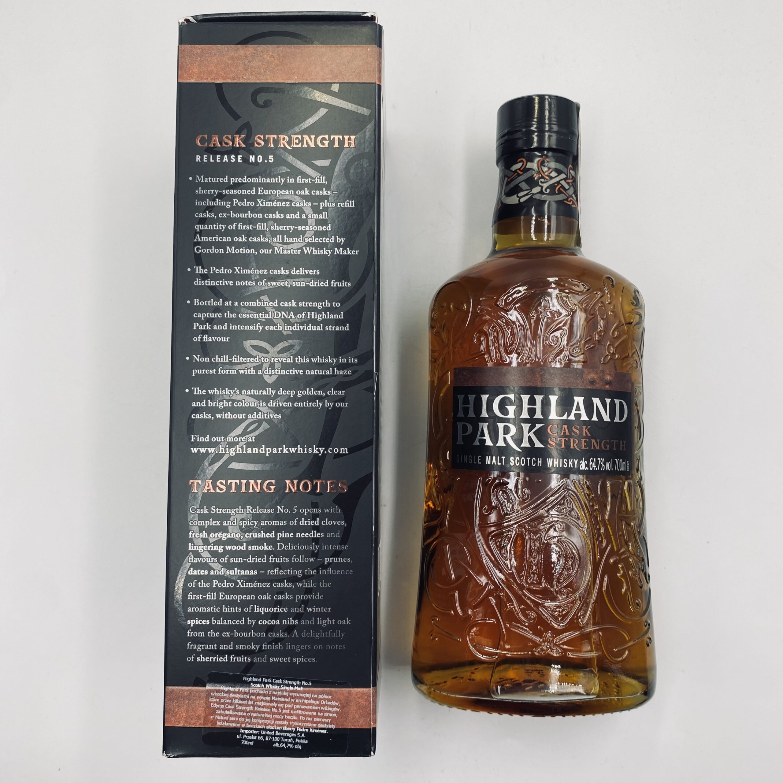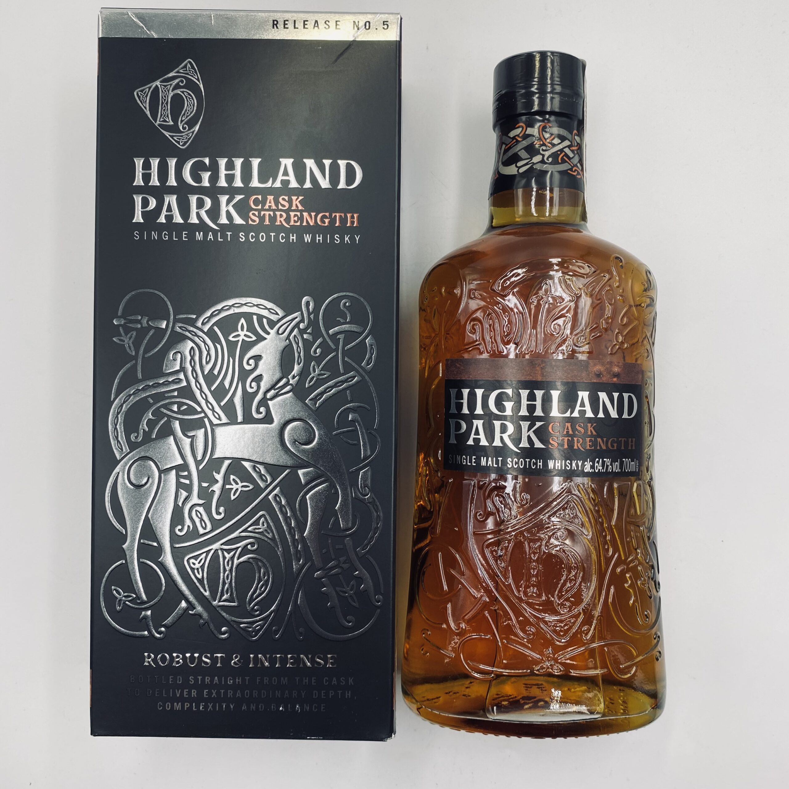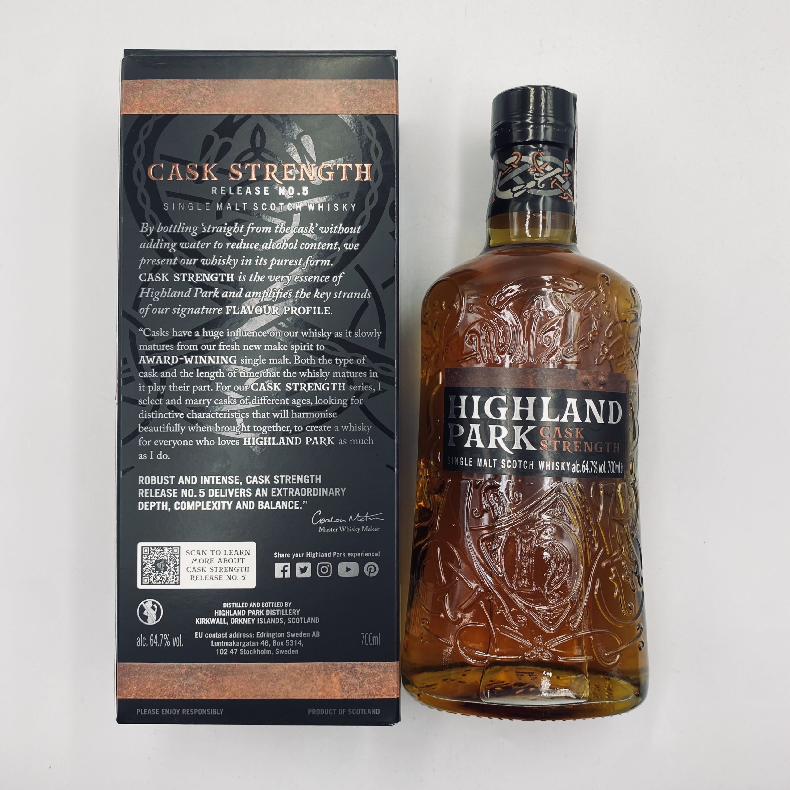 Highland Park Cask Strength No. 5 64,7% 0,7L to kolejna odsłona limitowanej serii whisky single malt od znakomitej destylarni Highland Park, zlokalizowanej na Orkadach. Ta wersja, butelkowana w naturalnej mocy beczki, prezentuje nieposkromioną intensywność oraz mistrzowską równowagę smaków i aromatów, które są znakiem rozpoznawczym marki.