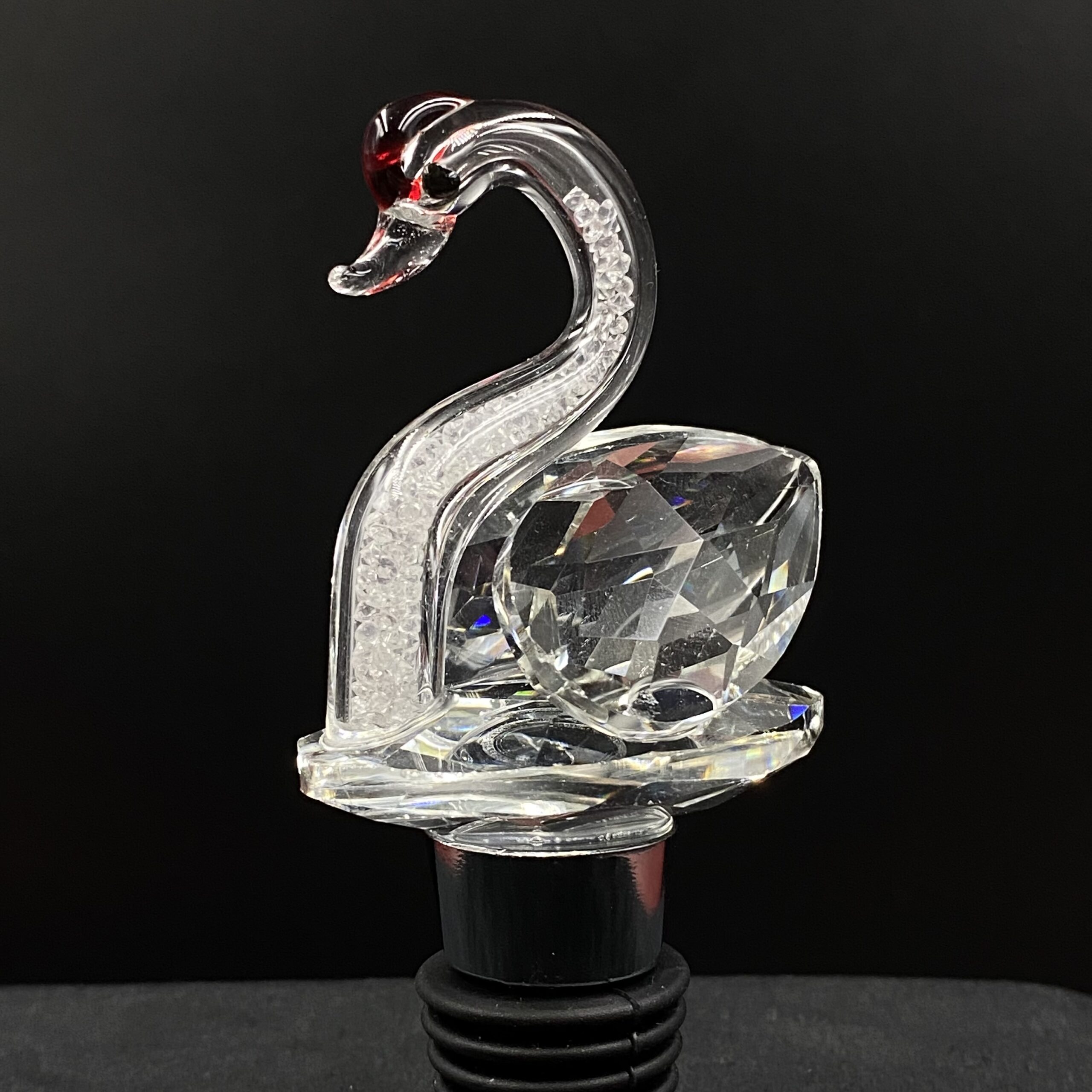 Uniwersalny korek do wina ze stali nierdzewnej zakończony rzeźbą w kształcie łabędzia.