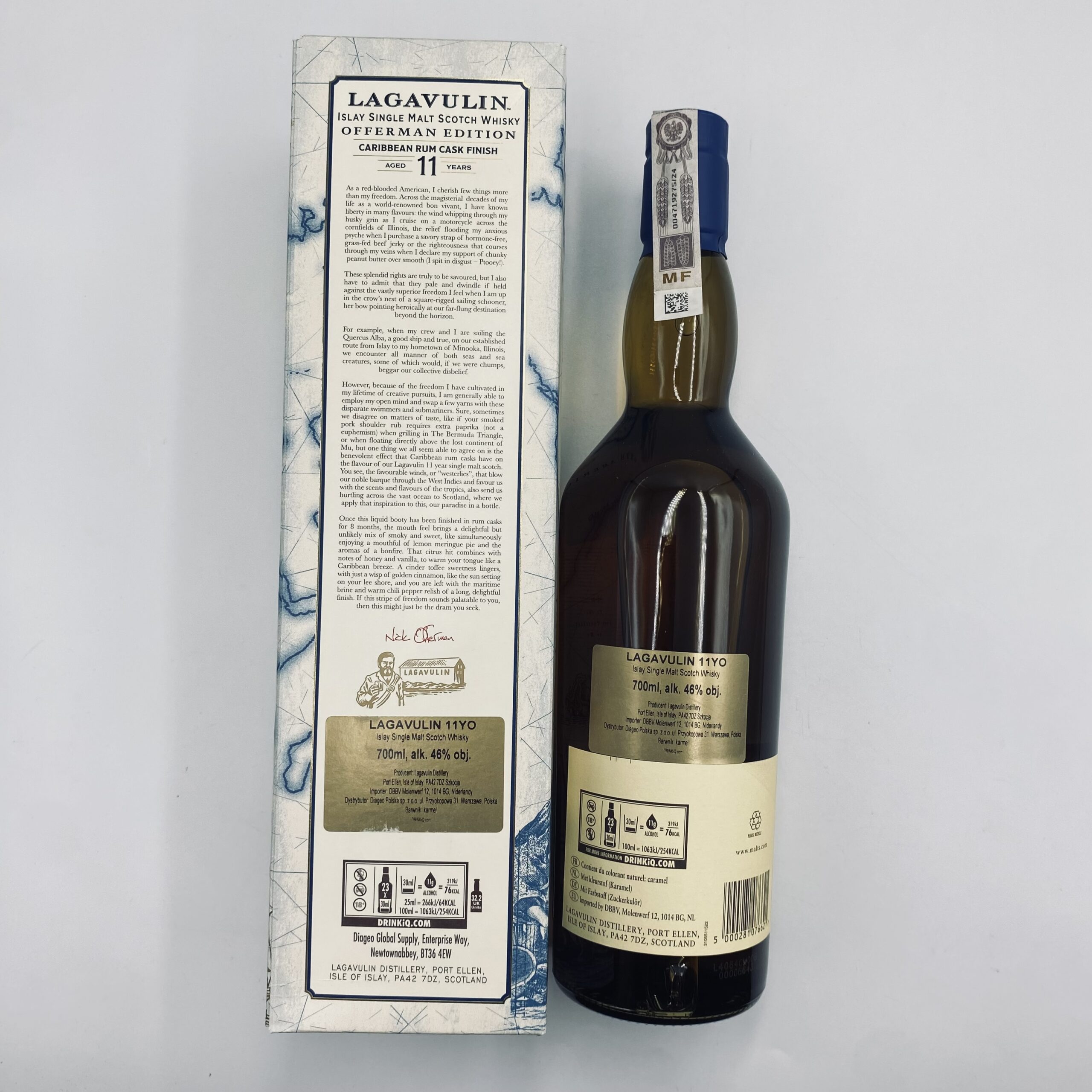 Lagavulin 11 YO Nick Offerman Rum Cask 46% to wyjątkowa edycja kultowej szkockiej whisky single malt, stworzona we współpracy z aktorem Nickiem Offermanem, wielkim miłośnikiem whisky. Dojrzewana przez 11 lat na wyspie Islay, ta wersja wzbogacona została o dodatkowe starzenie w beczkach po rumie, co nadaje jej unikalnego, tropikalnego charakteru, pozostając przy tym wierną intensywnie dymnemu stylowi Lagavulina.