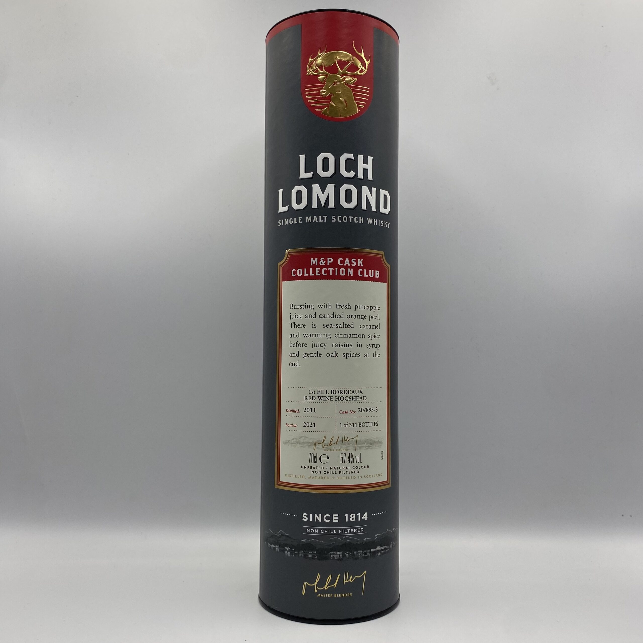Ta wyjątkowa edycja whisky z destylarni Loch Lomond w regionie Highlands została wydestylowana w roku 2011 i w roku 2021 zabutelkowana dla dystrybutora M&P Alkohole i Wina Cygara jako część serii „M&P Cask Collection Club”. Celem było stworzenie intensywnego i złożonego single maltu: po początkowym dojrzewaniu w beczce z amerykańskiego dębu whisky przez około 9 miesięcy przeszła finisz w pierwszego napełnienia beczce po czerwonym winie z regionu Bordeaux (nr 20/895-3). Moc butelkowania wynosi 57,4% ABV, kolor naturalny, bez filtracji na zimno.
