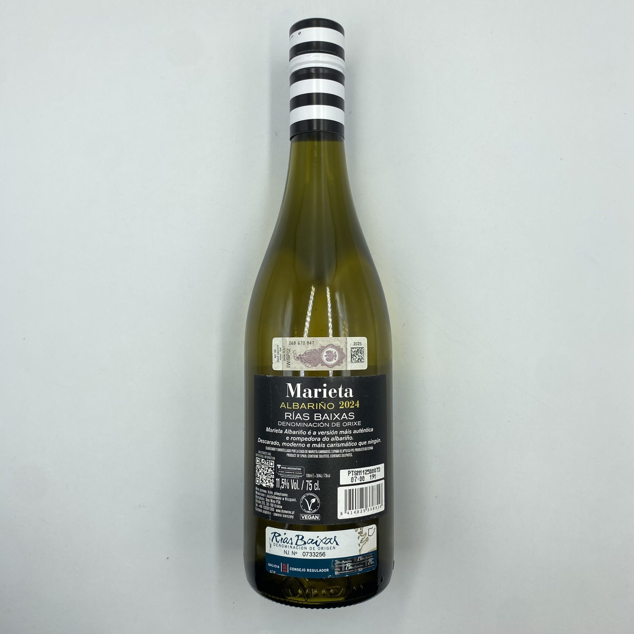 Marieta Albariño Semi Seco to hiszpańskie białe wino o półwytrawnym charakterze, produkowane ze szczepu Albariño, typowego dla północno-zachodniej Hiszpanii, szczególnie regionu Rías Baixas. Albariño jest znane z wyraźnej świeżości, aromatycznego profilu i morskich nut, które doskonale współgrają z lekką słodyczą stylu półwytrawnego (semi seco). Marieta Albariño Semi Seco łączy w sobie owocową ekspresję tego szczepu z przyjemną, delikatną słodyczą, co czyni je bardzo przystępnym i uniwersalnym winem.