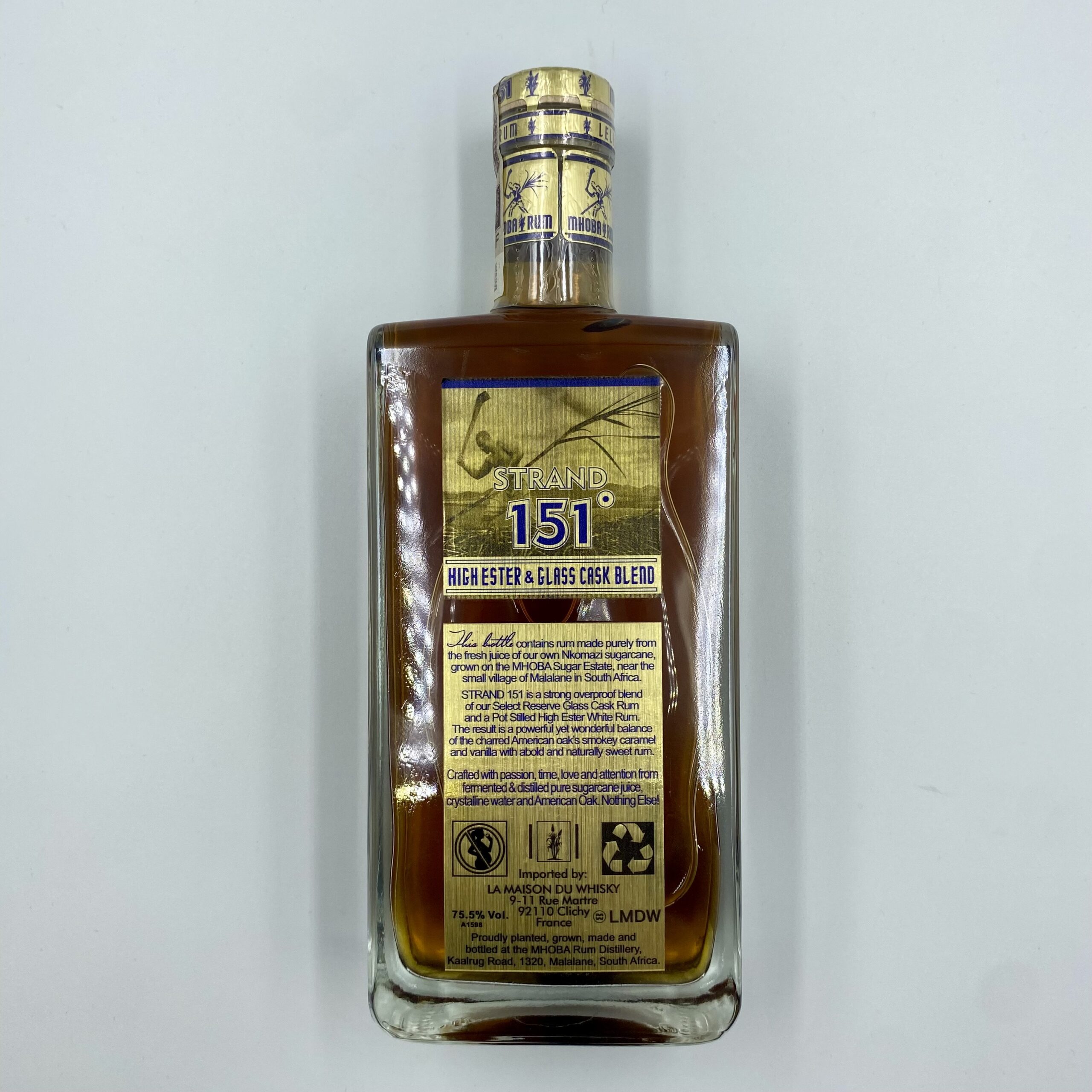 MHOBA Strand 151 to potężny, kraftowy rum z destylarni Mhoba, pochodzący z Nkomazi Estate. Wyjątkowy blend imponującej mocy 75,5%, przygotowany ze świeżo tłoczonego soku trzciny cukrowej – połączenie mocnego rumu wysokiego estru i rumu dojrzewającego w szklanych zbiornikach z fragmentami palonego białego dębu. Rum kraftowy typu agricole, destylowany w pojedynczej drewnianej kolumnie pot still, bez starzenia (unaged), jest to blend dwóch rumów: estrowego („High Ester”) i dojrzewającego w szkle z dębowymi wkładkami („Glass Cask”). MHOBA Strand 151 to esencja dzikości i potęgi estrów – rum o ogromnej mocy, głębokiej strukturze i dzikim charakterze. To nie jest przyjazny, łatwy rum – to wyzwanie i gratka dla koneserów, którzy szukają wpływowego, nieokiełznanego doświadczenia.