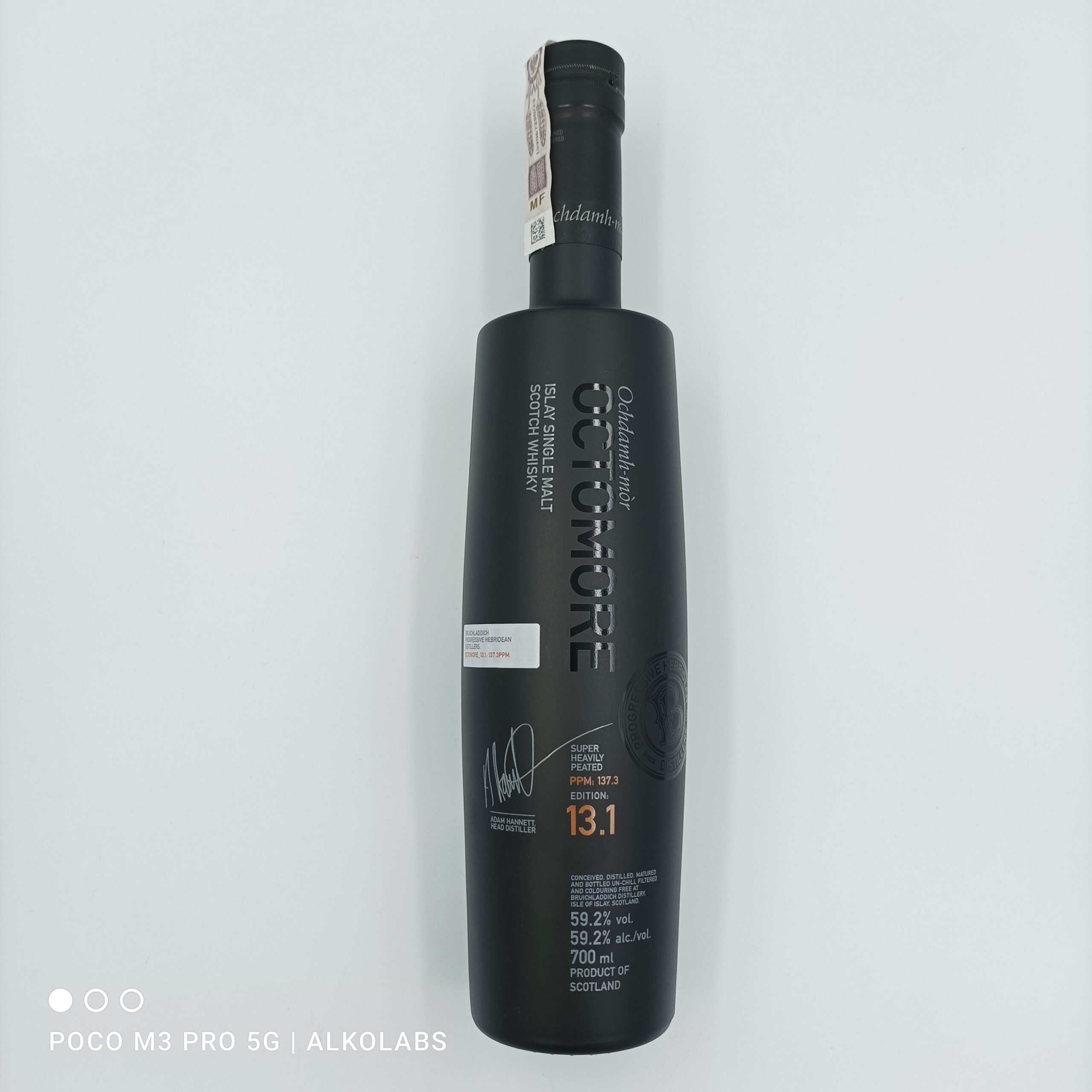 Octomore 13.1 to piąta edycja serii nr 13, jedna z najmocniej torfowych whisky świata – 137,3 ppm fenoli – destylowana w 2016 r. z jęczmienia Concerto, dojrzewała 5 lat w beczkach po bourbonie, a następnie jeszcze w nowych beczkach pierwszego napełnienia z amerykańskiego dębu. Octomore 13.1 to esencja dymnej potęgi, ale jednocześnie harmonii i głębi — idealna dla wymagających miłośników torfu, we własnym tempie, solo lub z kilkoma kroplami wody. Skomplikowana, imponująca, wyrafinowana eksplozja Islay.