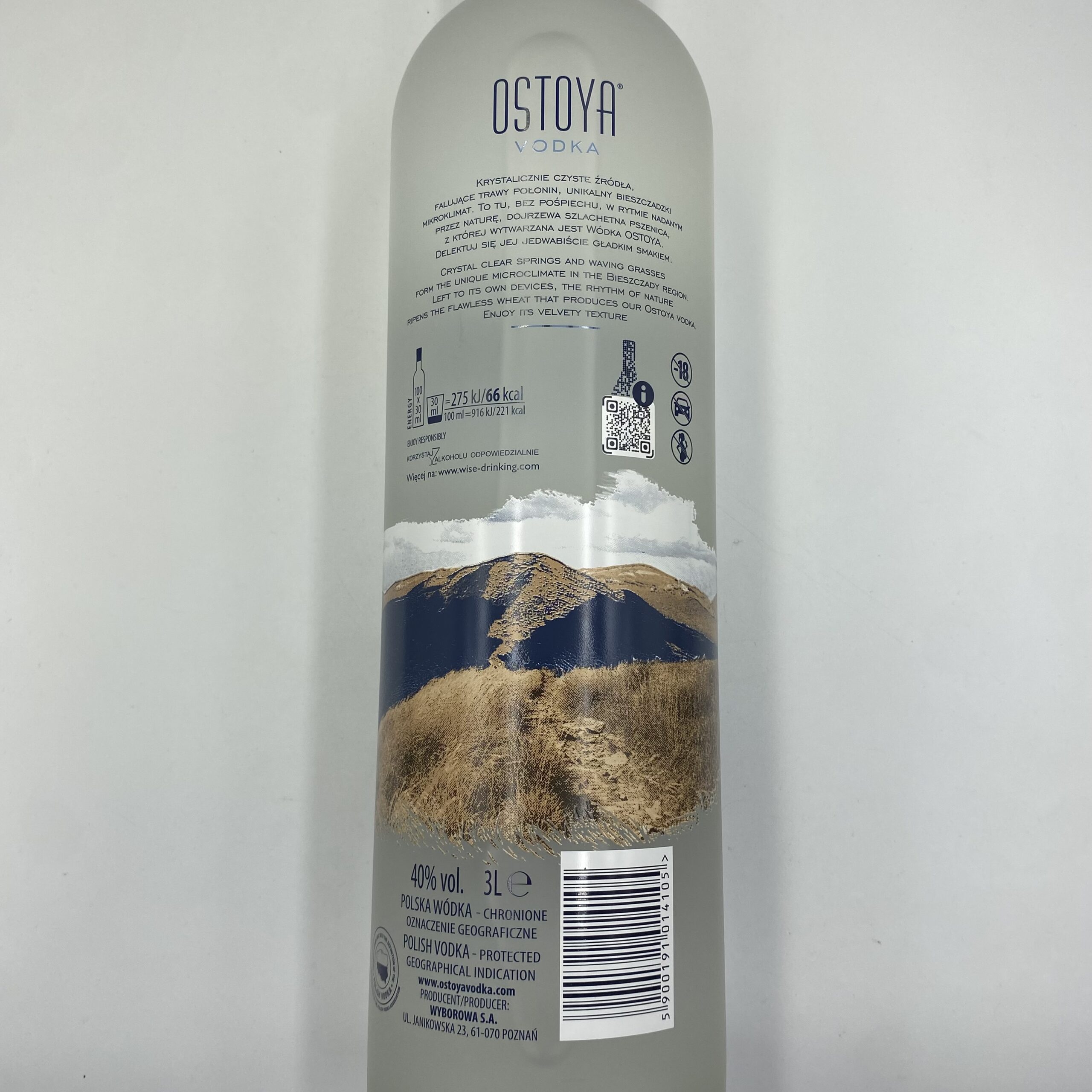 OSTOYA 40% 3L to polska wódka klasy „premium”, produkowana z pszenicy pochodzącej z terenów Bieszczad. Ma na celu łączenie tradycyjnego rzemiosła z wysoką jakością surowców, dając trunek elegancki, czysty i przemyślany. Jej zbożowy, delikatny charakter czyni ją bardziej subtelną od wielu „masowych” wódek — dobra dla tych, którzy szukają wódki raczej do spokojnej degustacji niż mocnych shotów.