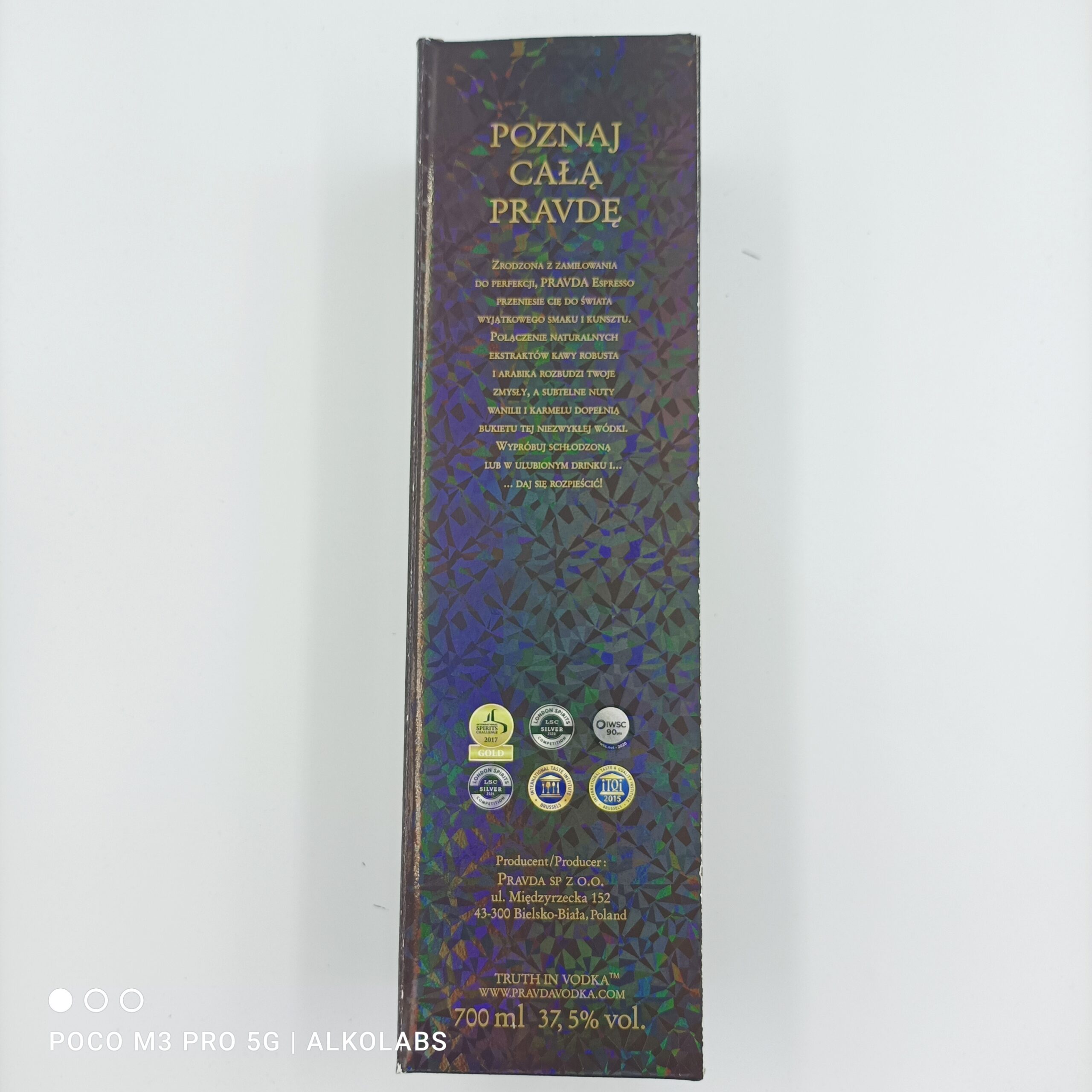 Pravda Espresso to aromatyczna wariacja klasycznej polskiej wódki Pravda, która powstaje w Beskidach z krystalicznie czystej wody źródlanej i starannie wyselekcjonowanego żyta. To połączenie najwyższej jakości wódki z intensywnym naparem kawowym, tworzące trunek o głębokim, aksamitnym charakterze. Destylarnia słynie z pięciokrotnej destylacji, dzięki której wódka zyskuje wyjątkową łagodność i czystość, a w tym wydaniu zostaje wzbogacona naturalnym aromatem espresso. Butelka umieszczona jest w eleganckim kartoniku, co czyni ją atrakcyjnym wyborem na prezent lub wyjątkowe okazje.