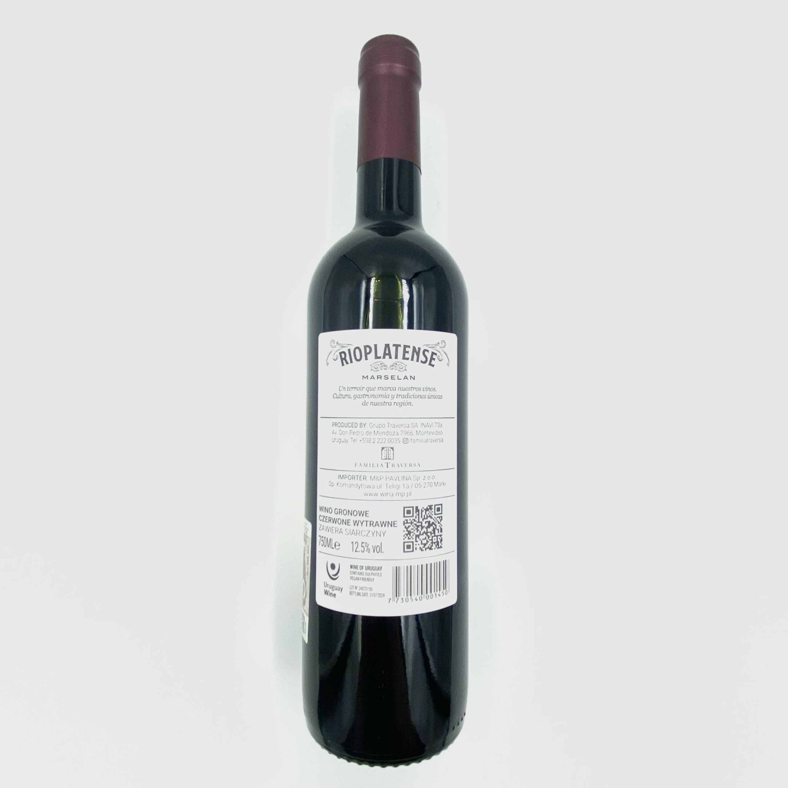 Rioplatense Marsélan to przyjazne, młode wino z Urugwaju, stworzone przez winiarnię Traversa w regionie Canelones. Powstało ze szczepu Marsélan – krzyżówki Cabernet Sauvignon i Grenache, dostosowanej do urugwajskiego klimatu. Doskonałe z kotletami jagnięcymi, daniami kuchni marokańskiej, chili con carne oraz fasolką po bretońsku czy pasztetem z soczewicy. Rioplatense Marsélan 2023 to lekko owocowe i rześkie wino, idealne na co dzień – łatwe w odbiorze, przyjemne i uniwersalne. Stanowi świetną okazję, by poznać Marsélan w stylu urugwajskim.