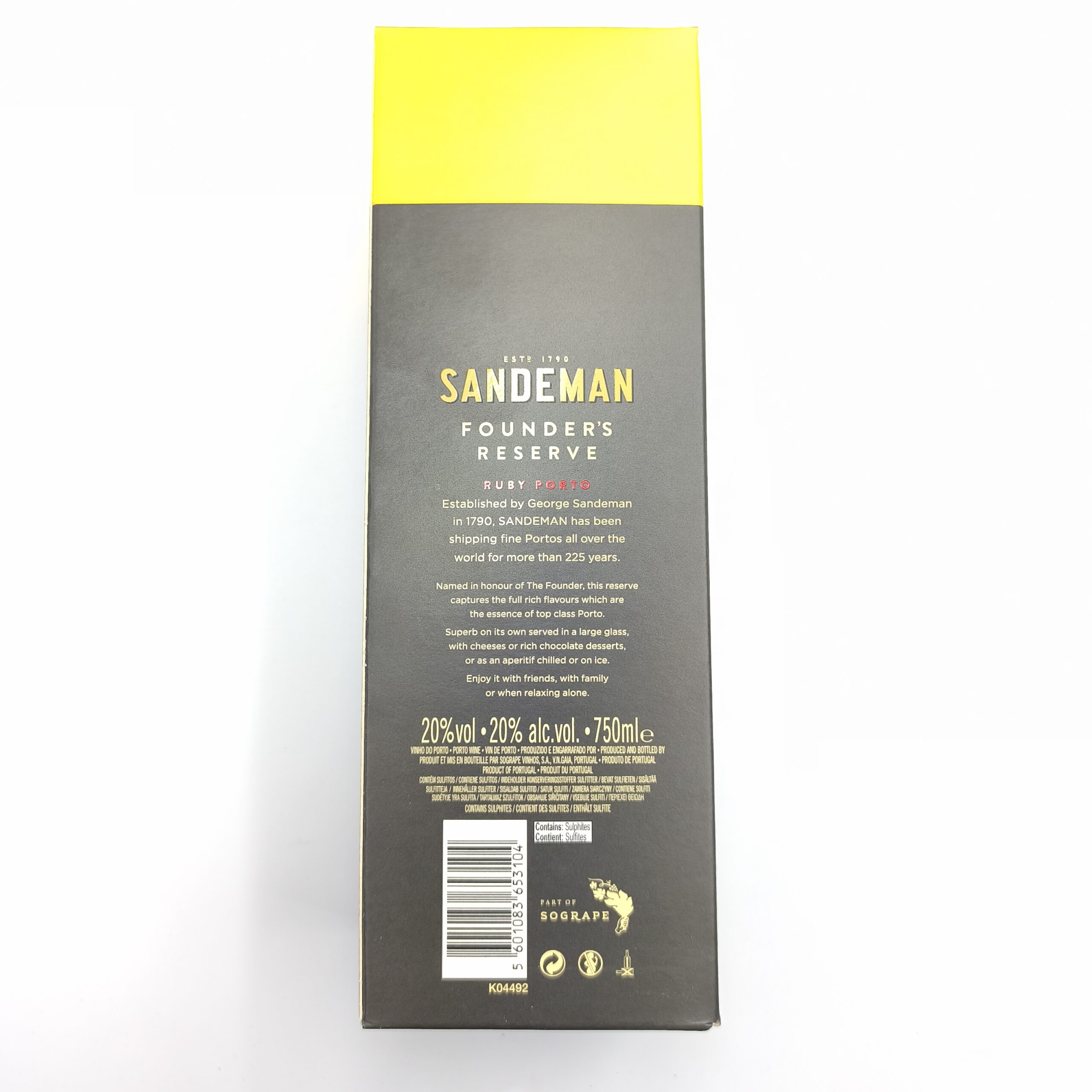 Sandeman Founder’s Reserve to porto stworzone jako hołd dla założyciela marki, George’a Sandemana, i jednocześnie jedno z najbardziej rozpoznawalnych win w ofercie tego historycznego domu, założonego w 1790 roku. Produkowane jest w Dolinie Douro z tradycyjnych portugalskich odmian, m.in. Touriga Nacional, Touriga Franca oraz Tinta Roriz. Jest to porto typu Ruby Reserve, oznaczające selekcję najlepszych win dojrzewających przez kilka lat w dużych dębowych kadziach, co pozwala zachować intensywną owocowość przy jednoczesnym zwiększeniu głębi i struktury. Styl Founder’s Reserve łączy świeżość i intensywność z elegancją oraz doskonałą równowagą.