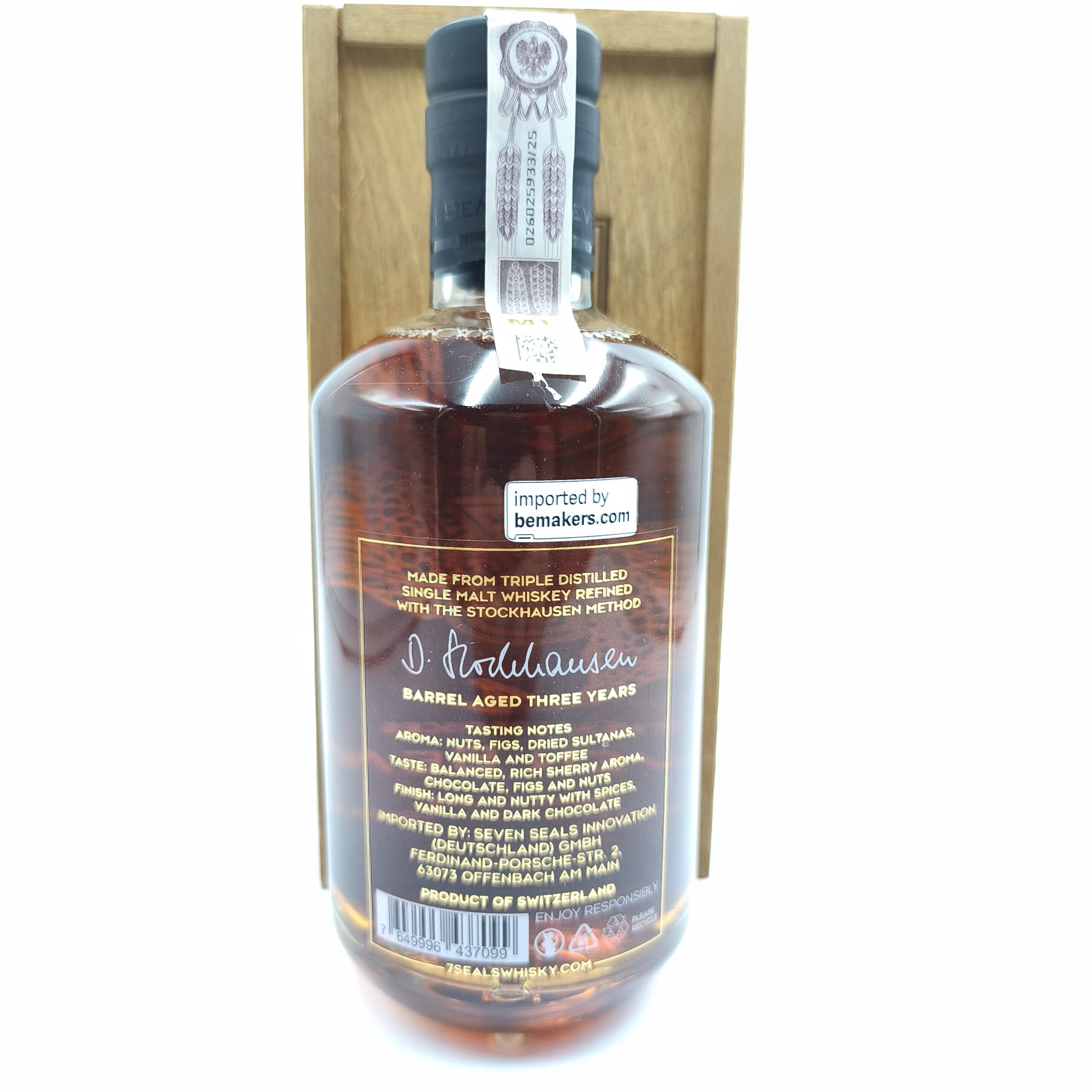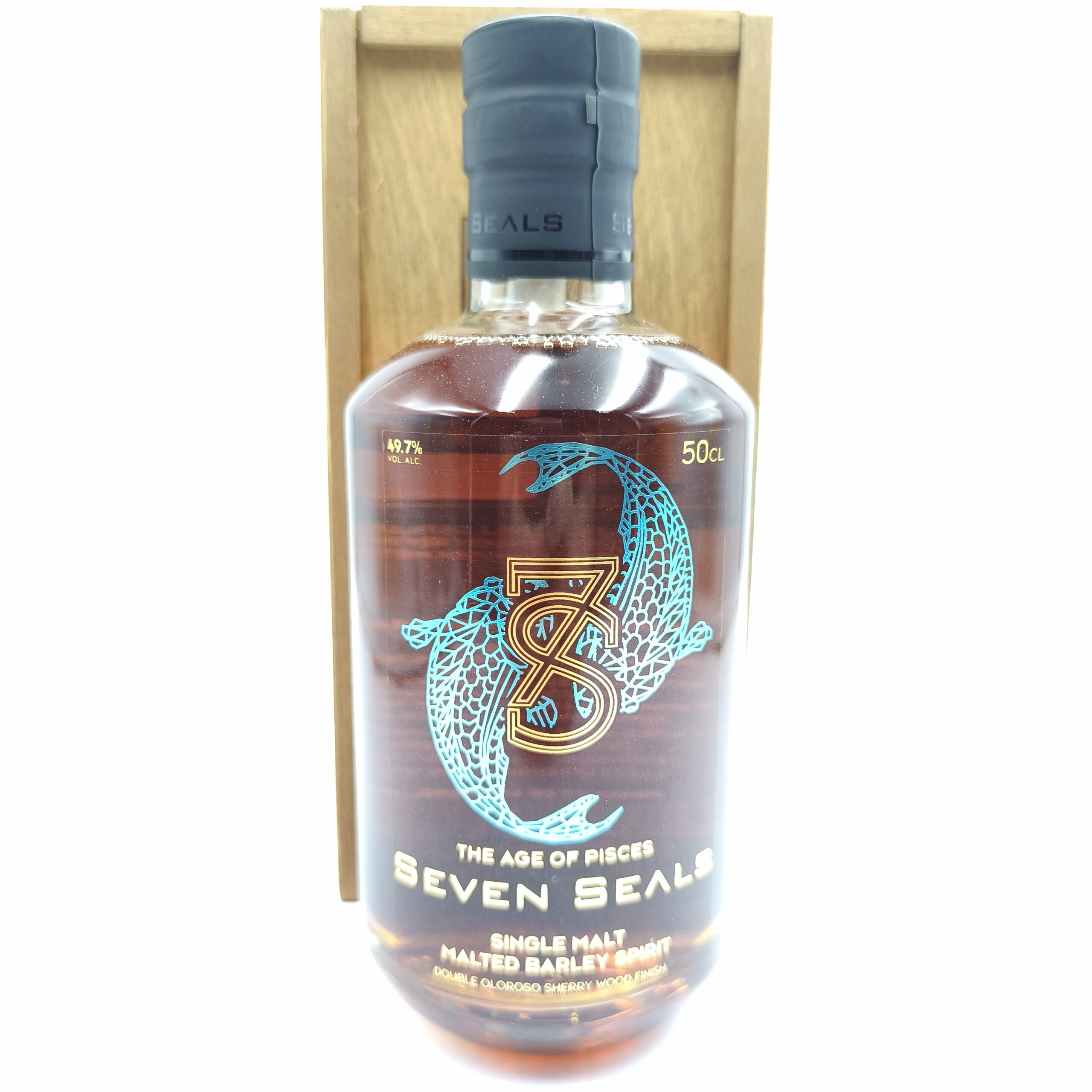 Seven Seals – The Age of Pisces to szwajcarski single malt z serii Zodiac Line, produkowany przez Seven Seals Distillery. Powstaje ze słodu jęczmiennego i dojrzewa z wykorzystaniem finiszu w beczkach po sherry Oloroso, co nadaje mu głęboki, zmysłowy i wyraźnie sherry’owy charakter. To whisky inspirowana znakiem Ryb – pełna emocji, wyobraźni i subtelnej elegancji, w której słodycz, owoce i orzechy tworzą harmonijną całość.