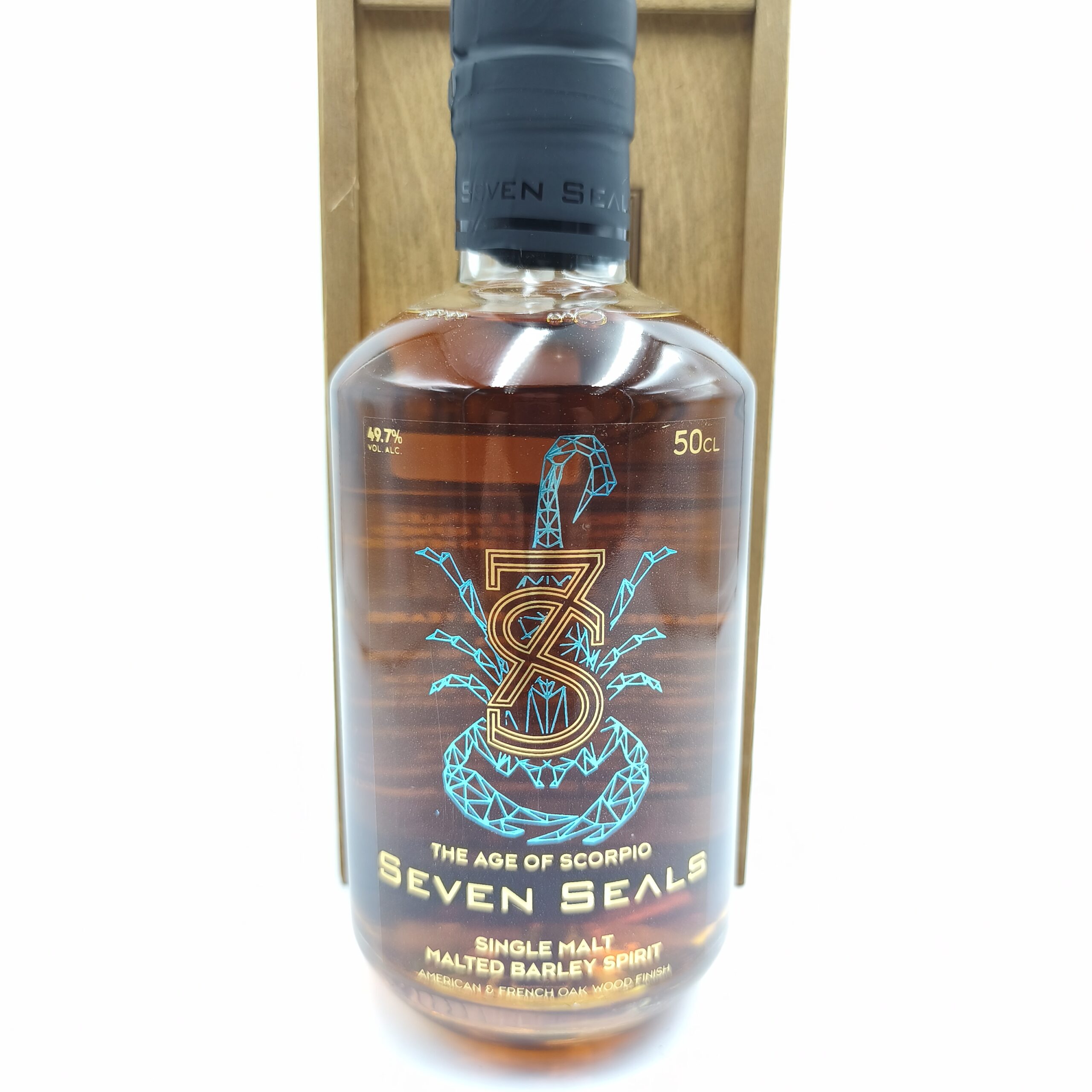 Seven Seals – The Age of Scorpio Oak to szwajcarski single malt z serii Zodiac Line, produkowany przez Seven Seals Distillery. Powstaje ze słodu jęczmiennego i dojrzewa w dębowych beczkach, co nadaje mu klasyczny, głęboki i elegancki charakter. Inspirowany znakiem Skorpiona, wyróżnia się intensywnością, precyzją i stopniowo ujawniającą się złożonością – od subtelnego początku po wyraźną, wielowarstwową strukturę.