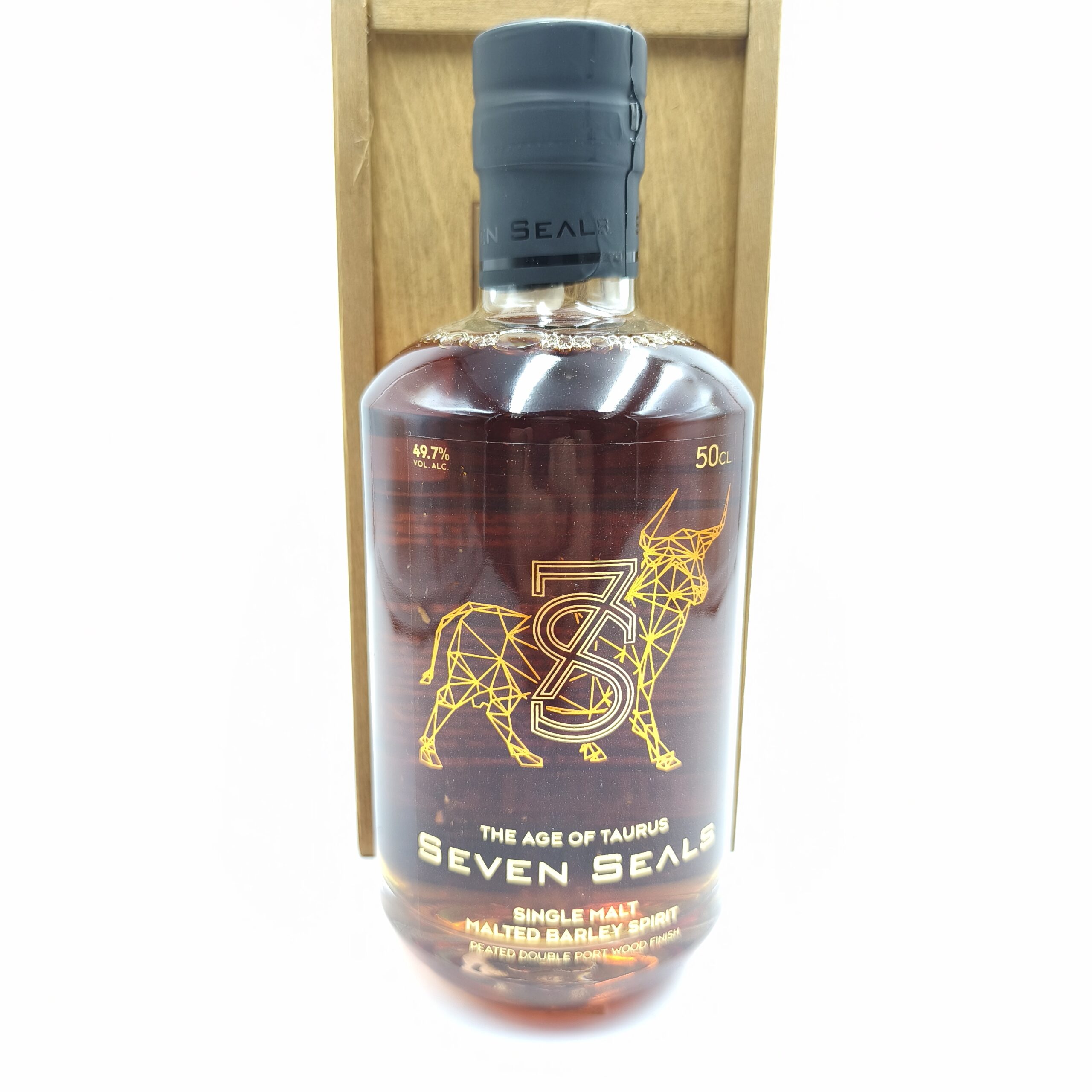 Seven Seals – Taurus Peated to szwajcarski single malt z serii Zodiac Line, produkowany przez Seven Seals Distillery. Powstaje ze słodu jęczmiennego i wyróżnia się intensywnym, torfowym charakterem oraz złożonym dojrzewaniem z wykorzystaniem potrójnego drewna i finiszu w beczkach po tawny porto. To whisky inspirowana znakiem Byka – mocna, wyrazista i pełna energii, łącząca dziką naturę torfu z subtelną słodyczą porto.