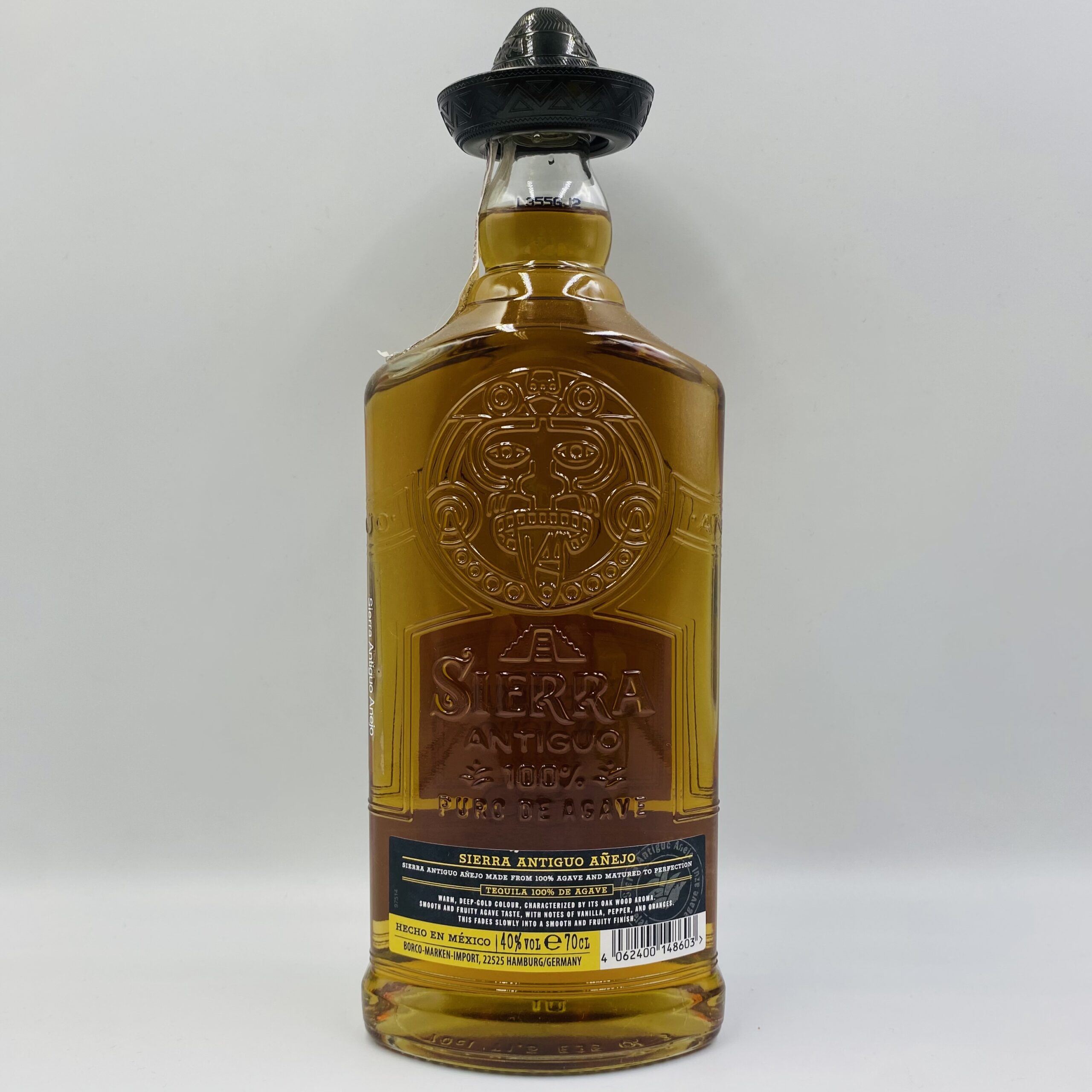 Sierra Antiguo Añejo Gold to tequila premium powstająca w regionie Jalisco w Meksyku, z ręcznie zbieranej agawy błękitnej Weber. Destylat dojrzewa przez co najmniej dwa lata w dębowych beczkach, dzięki czemu nabiera eleganckiego złocistego koloru i wyjątkowej głębi smaku. Połączenie tradycyjnych metod produkcji z długim leżakowaniem sprawia, że Añejo z linii Antiguo wyróżnia się bogatym, dojrzałym charakterem, cenionym przez koneserów. To tequila, która zachwyca harmonią pomiędzy naturalną świeżością agawy a szlachetnymi nutami beczkowymi. Butelka w charakterystycznym, eleganckim stylu podkreśla jej status premium i stanowi doskonały wybór zarówno do degustacji, jak i kolekcjonerskich zestawów.