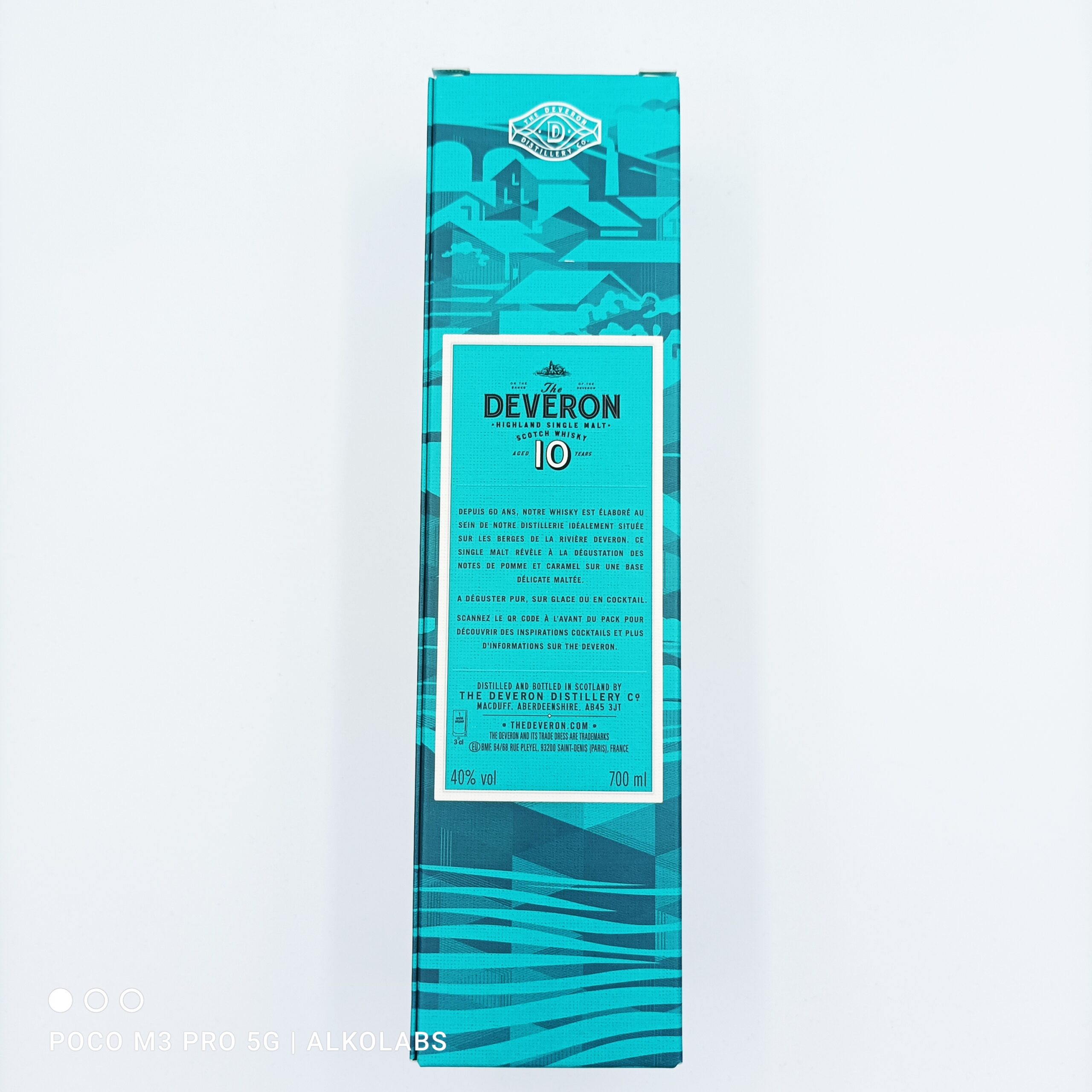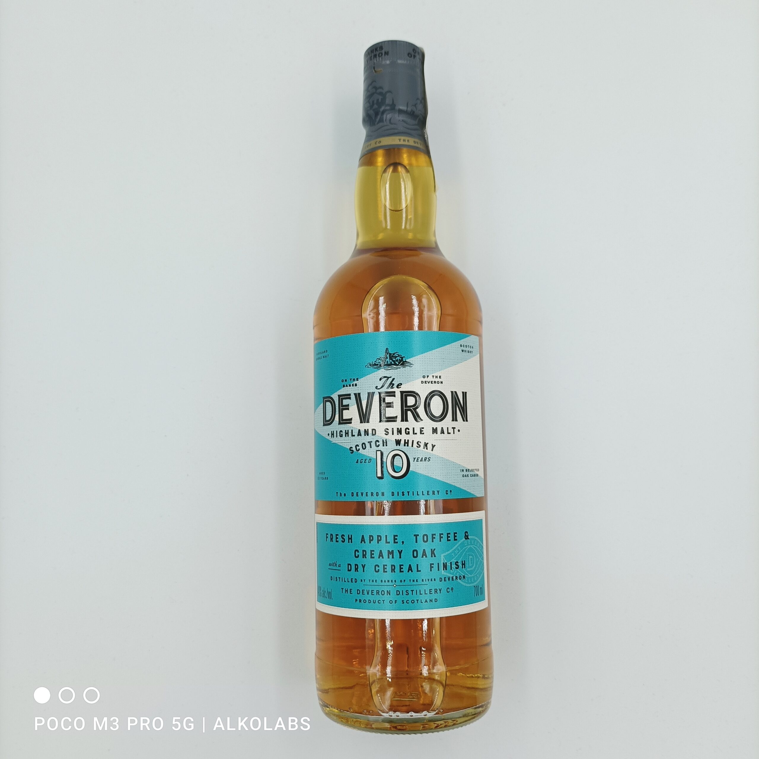 The Deveron 10YO to single malt whisky z regionu Highland, destylowana w gorzelni Macduff, położonej u ujścia rzeki Deveron. To właśnie bliskość Morza Północnego i chłodny klimat nadają destylatom charakterystyczną świeżość i subtelny morski akcent. Whisky dojrzewa przez 10 lat w tradycyjnych dębowych beczkach, co pozwala jej zyskać łagodny i harmonijny profil smakowy. Marka The Deveron znana jest z lekkich, przystępnych whisky, które łączą owocową delikatność z nutą morskiej bryzy. Butelka w charakterystycznym kształcie o zielonkawym odcieniu przyciąga uwagę i podkreśla związek trunku z naturą oraz północnym wybrzeżem Szkocji.